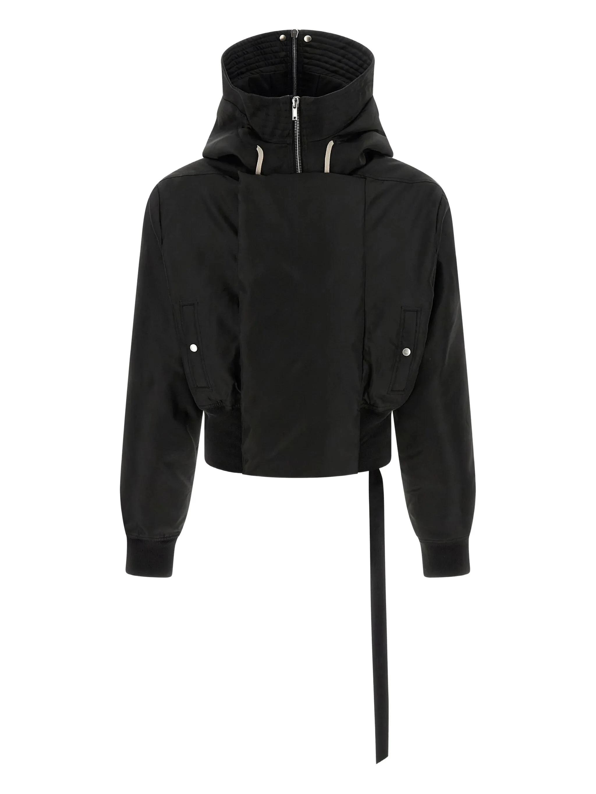 - black - large hood - zip detail - asymmetric flap - snap button closure - stretch knit cuffs Materials & Product Care Nylon 100%