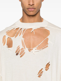 - ecru - crew neck - drop shoulder - short sleeves - distressed effect Materials & Product Care Organic Cotton 100% Size & Fit - Designed for an oversized fit, offering additional room throughout - Made from a lightweight non-stretch fabric, this piece offers minimal elasticity when worn - This piece is only produced in one size; for help with this item's sizing, refer to our product measurements - The model is 1.87 m wearing size OS.