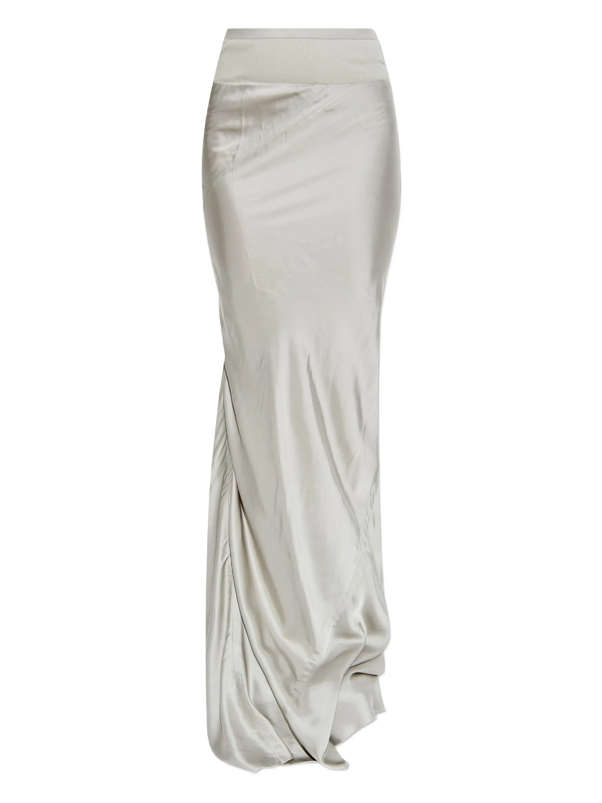 - grey - satin - ribbed waistband - asymmetrical hem - draped design Materials & Product Care Acetate 100%