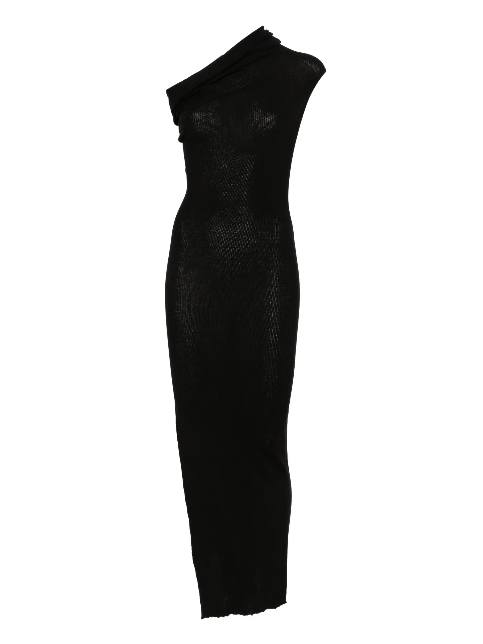 - black - ribbed knit - asymmetric length - strapless - virgin wool Materials & Product Care Virgin Wool 100% Size & Fit - The model is 1.80 m wearing size S.