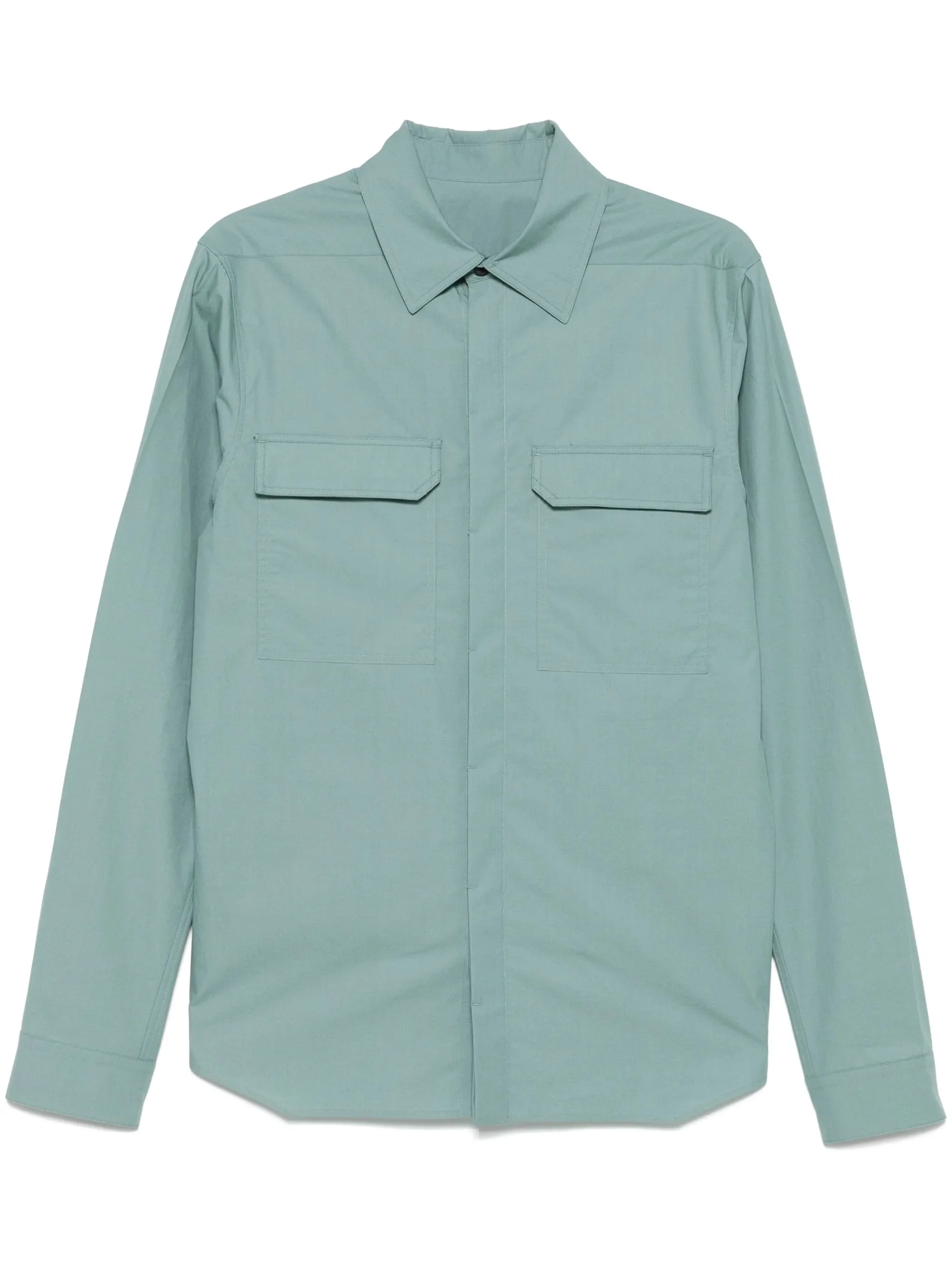 - turquoise blue-green - concealed front press-stud fastening - buttoned cuffs - two chest flap pockets - long sleeves Materials & Product Care Buffalo Horn 100%, Organic Cotton 100% Size & Fit - Designed for a regular fit, allowing for a comfortably loose fit throughout the body - Made from a midweight non-stretch fabric - The model is 1.86 m wearing size 48.