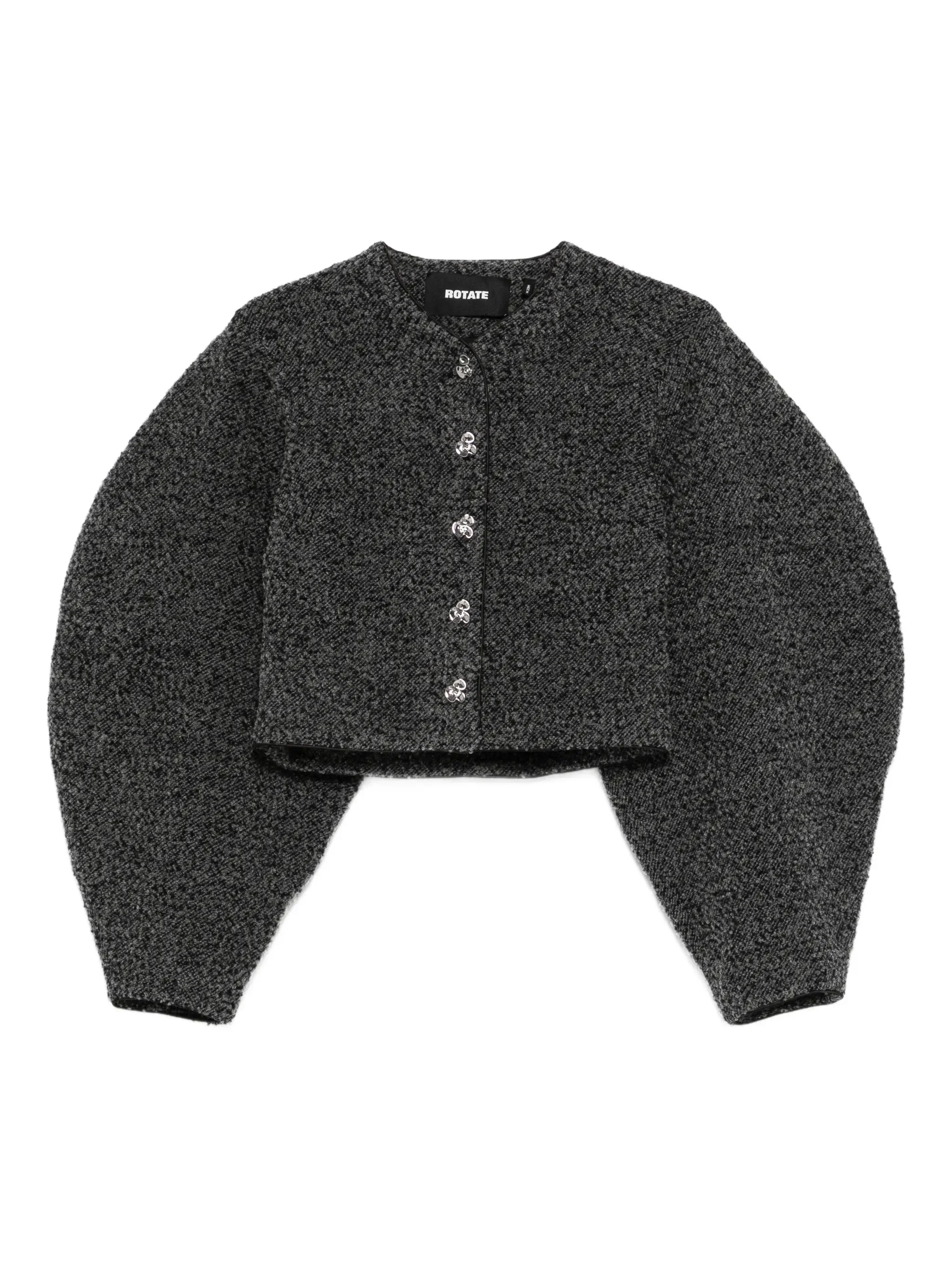 - grey pinstripe - boucle texture - button fastening - round neck - short length - long sleeves Materials & Product Care Lining: Polyester 52%, viscose 48% Outer: Polyester 20%, Wool 80% Size & Fit - The model is 1.73 m wearing size 36.
