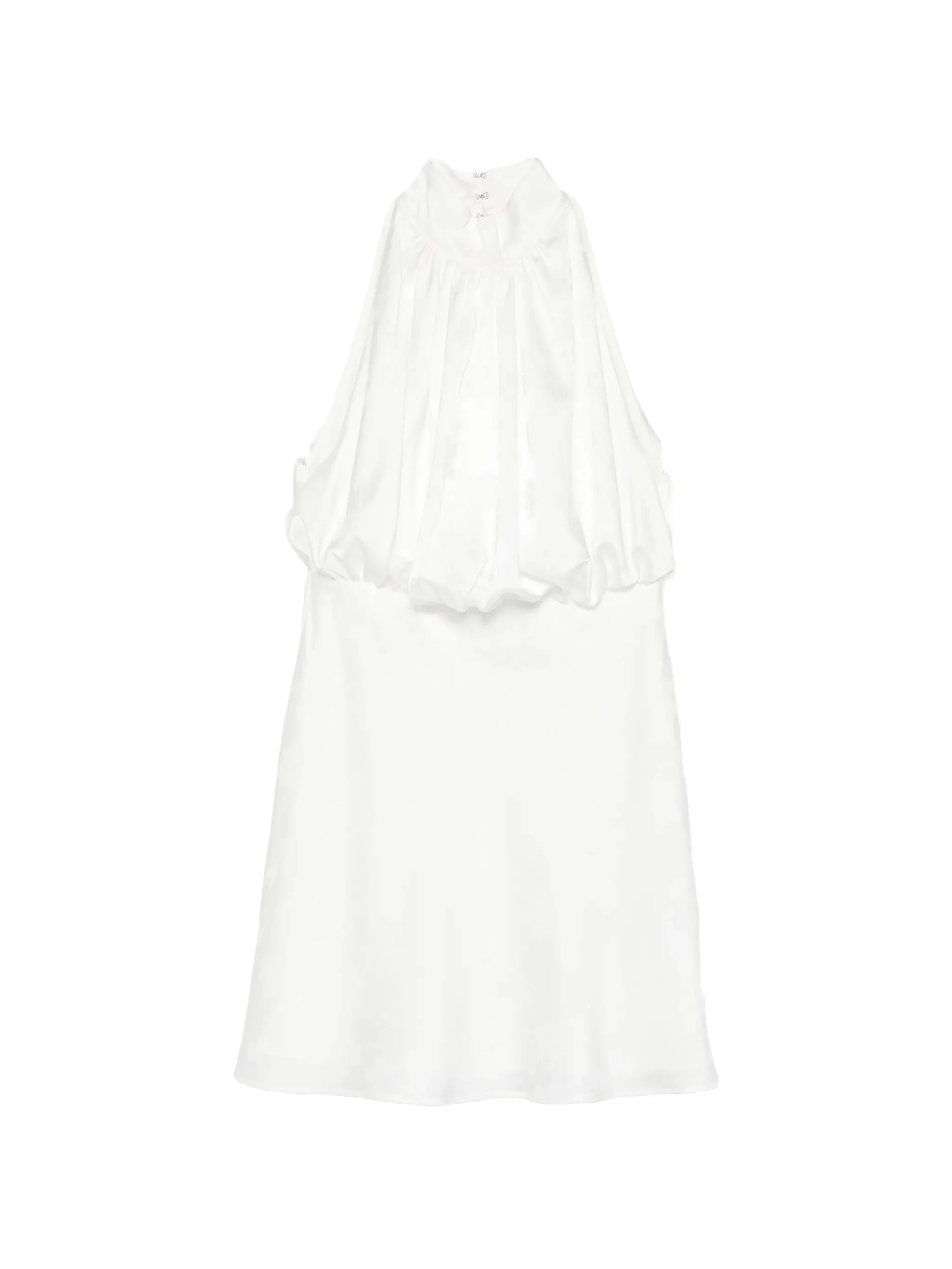 - white - high neck - sleeveless - gathered detail - mini length Materials & Product Care Lining: Elastane 8%, Polyester 92% Outer: Elastane 3%, Recycled Polyester 97% Size & Fit - The model is 1.75 m wearing size 36.