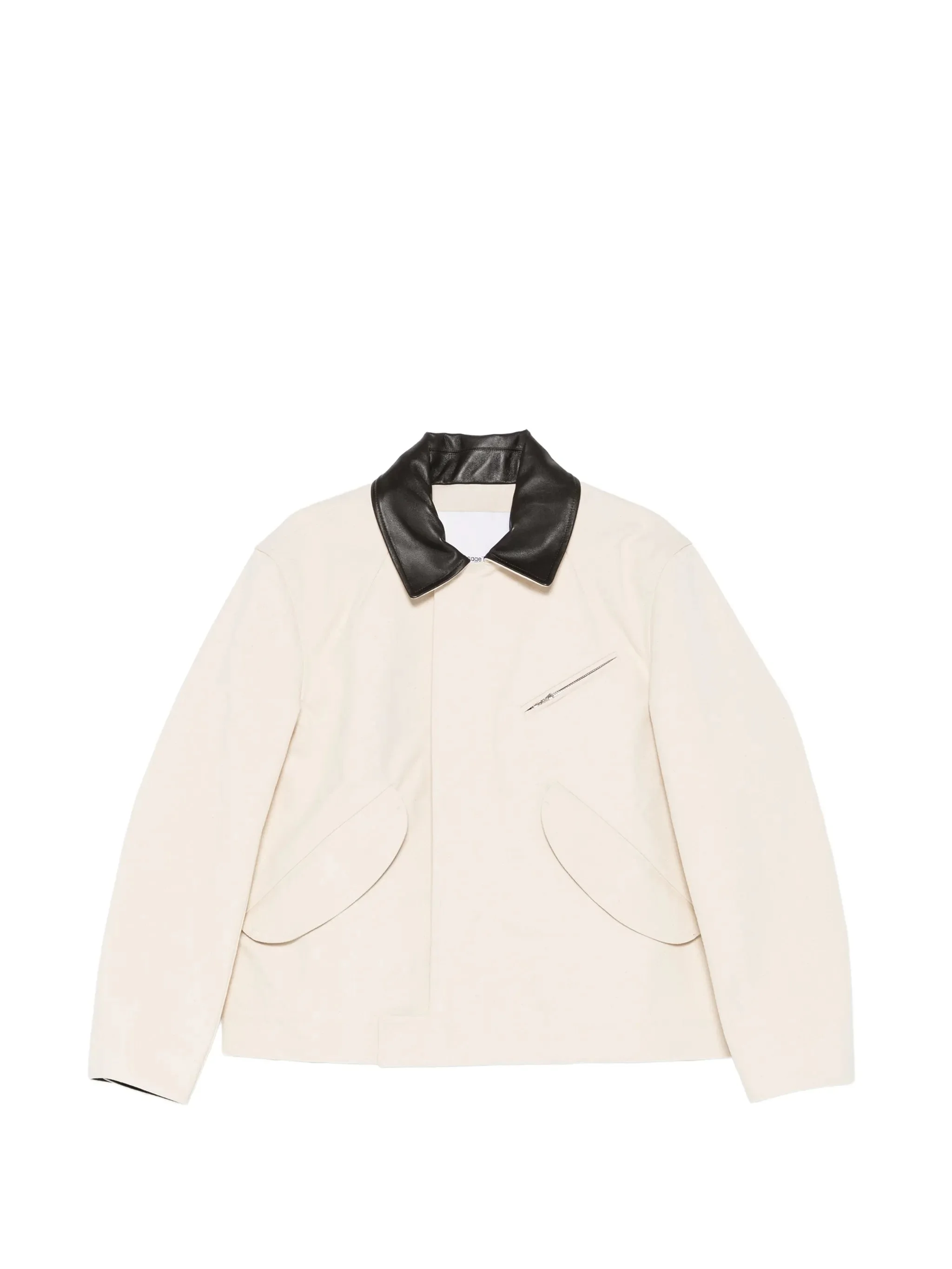 - ivory - leather collar - snap fastening - flap pockets - zip pocket Materials & Product Care Calf Leather 100%, Cotton 100% Size & Fit - The model is 1.87 m wearing size M.
