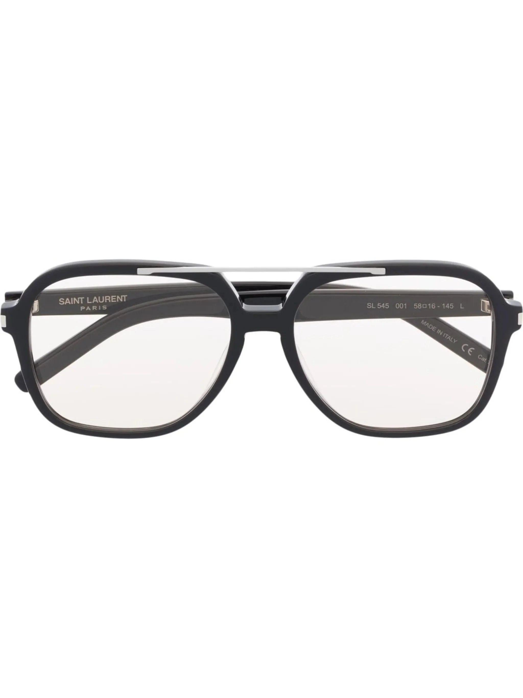 - black - acetate - pilot frame - geometric frame - double bridge - logo plaque at the arm - straight arms - curved tips - These glasses come with a protective case. Materials & Product Care Acetate 100%