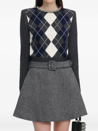 - grey - argyle pattern - crystal embellishment collar - long sleeves - round neck Materials & Product Care Wool 100%