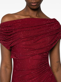 - burgundy - rhinestone embellishment - drape detail - off-shoulder design Materials & Product Care Elastane 5%, Polyester 95% Size & Fit - The model is 1.78 m wearing size 8.