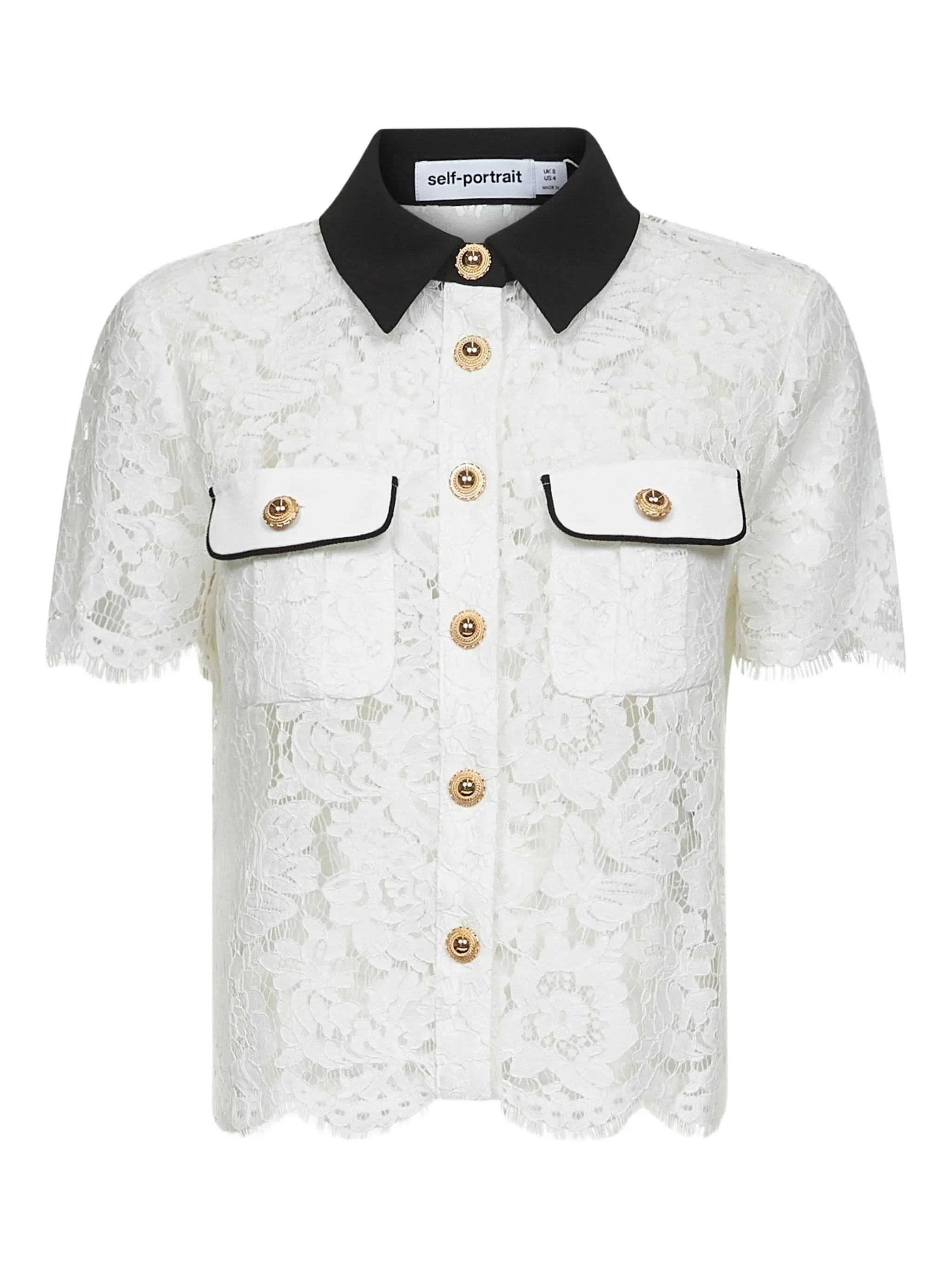 - white - front button fastening - contrasting collar - chest flap pockets - scallop edge Materials & Product Care Cotton 30%, Polyamide 70%
