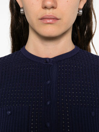 - navy blue - scalloped collar - front button fastening - long sleeves - four front pockets - ruffled hem Materials & Product Care Elastane 1%, Polyamide 10%, Polyester 16%, viscose 73%