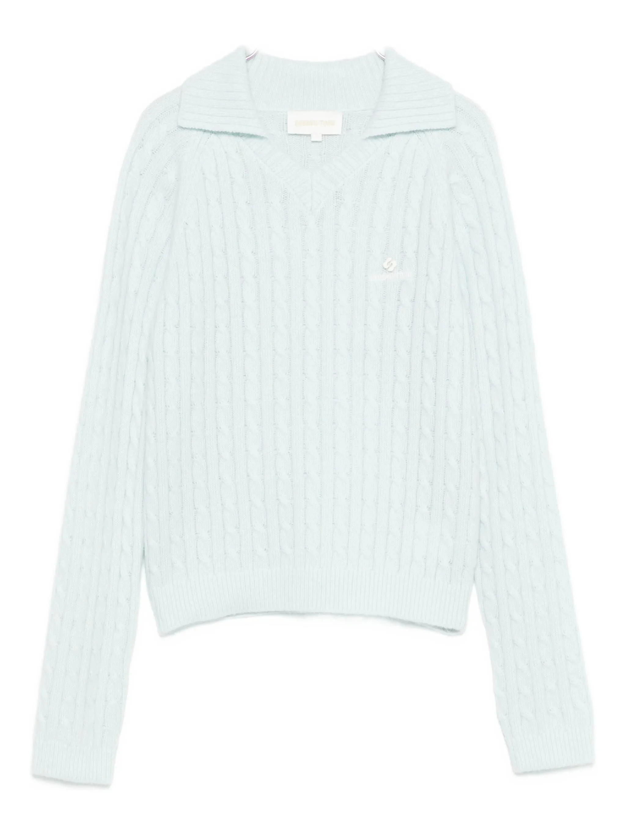 - powder blue - cable-knit construction - wingtip collar - long sleeves - logo detail - ribbed trim Materials & Product Care Body: Cashmere 65%, Cotton 35%