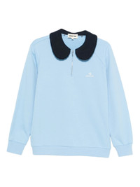- blue - contrasting collar - half zip fastening - long sleeves - straight hem Materials & Product Care Cotton 100% Size & Fit - The model is 1.77 m wearing size 10.