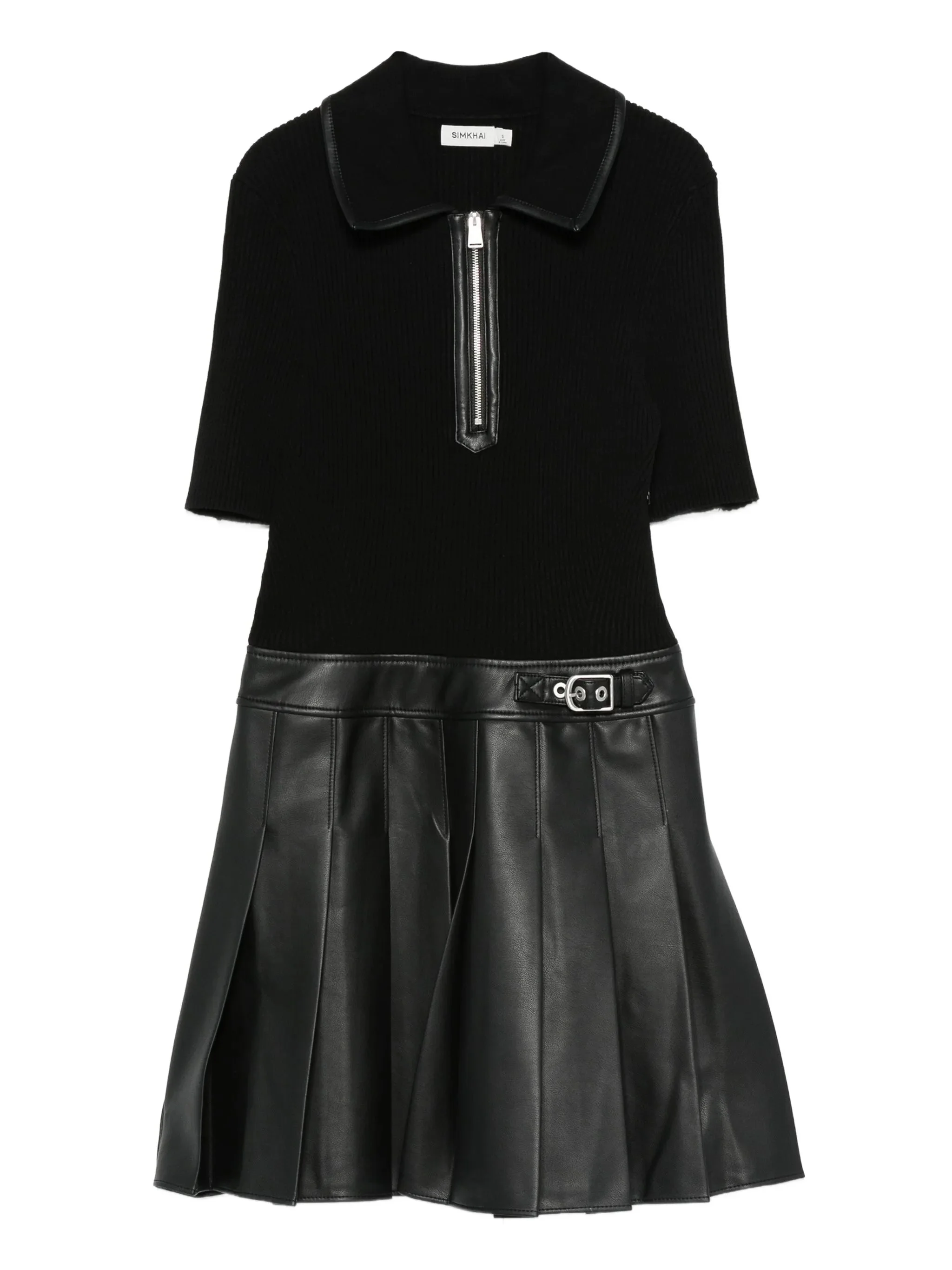 - black - polo collar - half-zip fastening - short sleeves - pleated skirt - belted waist Materials & Product Care Fabric 100%, Polyurethane 100% Size & Fit - The model is 1.75 m wearing size S.