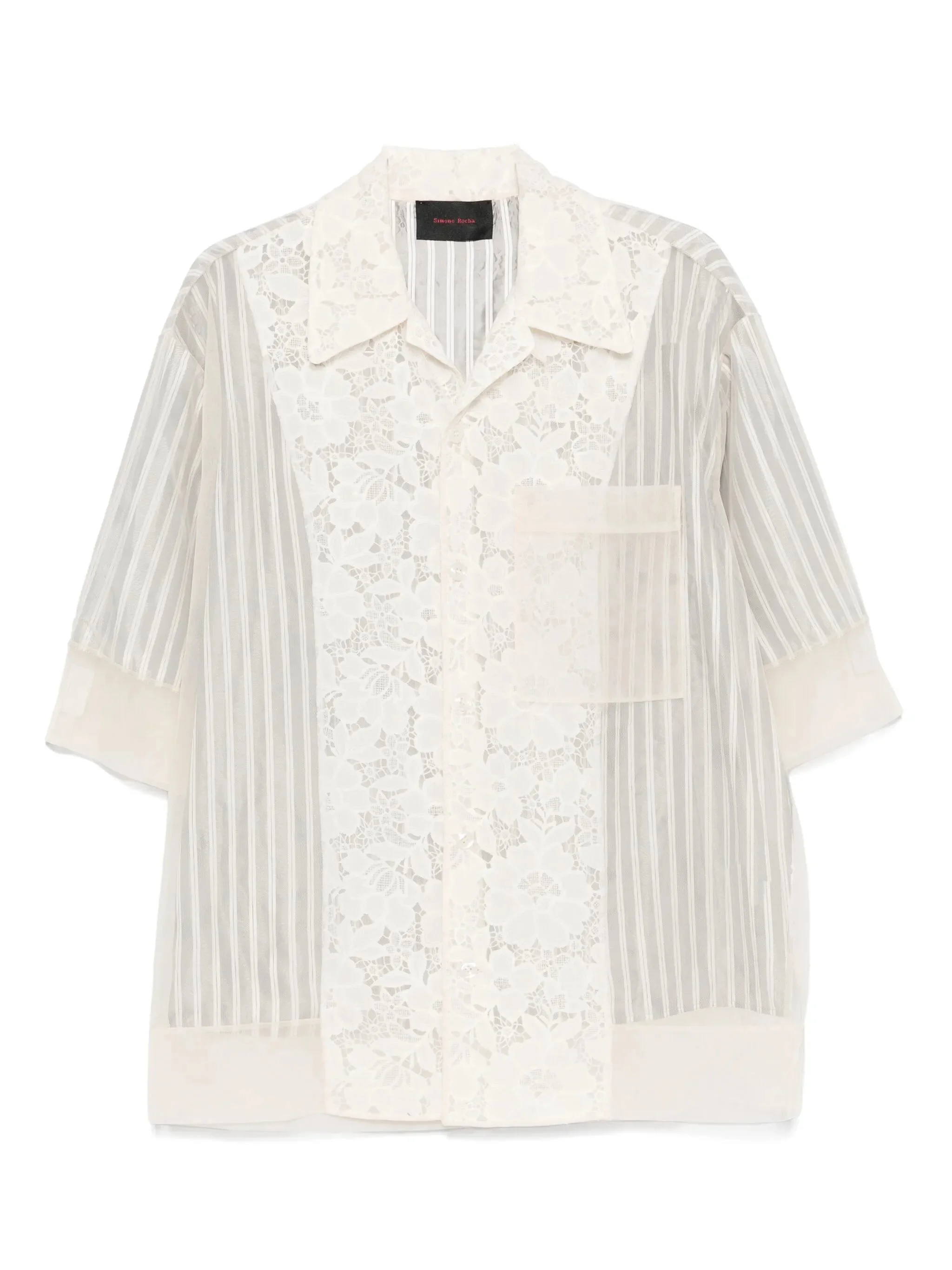 - off-white - floral lace panel - striped fabric - short sleeves - button fastening - classic collar Materials & Product Care Lining: viscose 100% Outer: Polyamide 100%, Polyester 100% Size & Fit - The model is 1.85 m wearing size M.