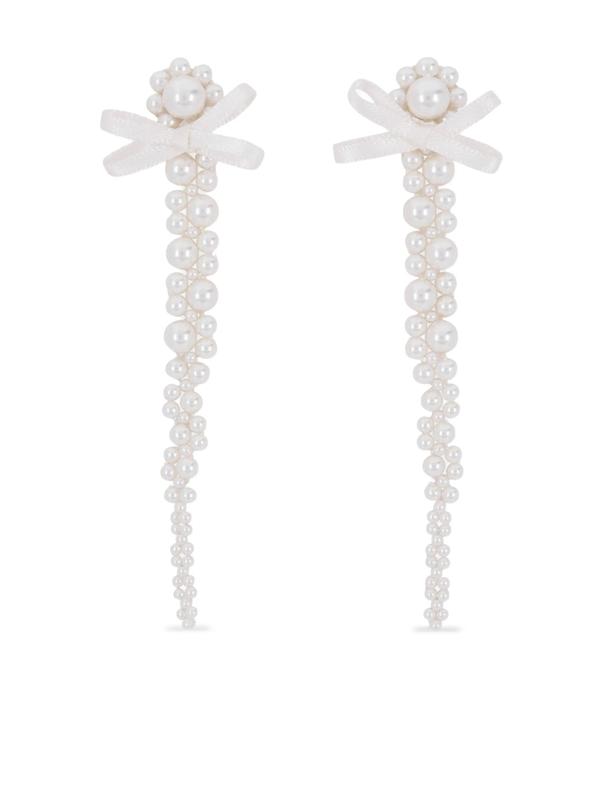 - off-white - resin-pearl embellishment - bow detail - cascading pearl design - drop design - These earrings come as a pair. Materials & Product Care Brass 15%, Resin 85%