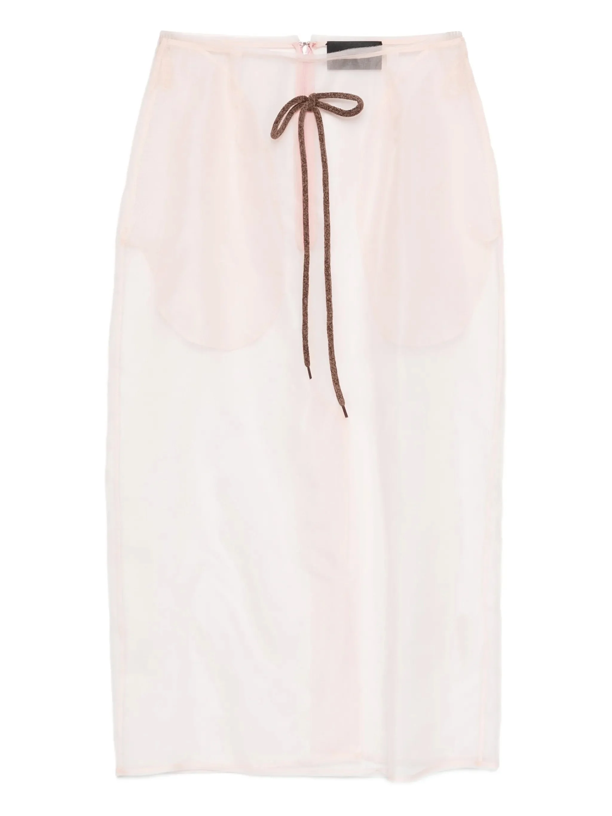 - pale pink - brown drawstring - frayed hem - column style - semi-sheer finish - pencil style Materials & Product Care Polyester 100%, Silk 100% Size & Fit - The model is 1.76 m wearing size 8.