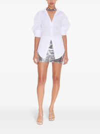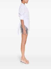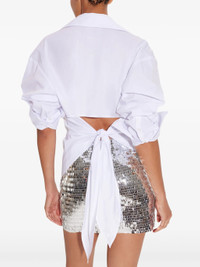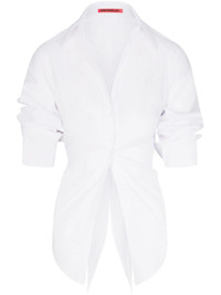 - white - cotton blend - poplin texture - gathered detailing - cut-out detailing - spread collar - front button fastening - rear tie fastening - short rolled sleeves - high-low hem Materials & Product Care Cotton 78%, Nylon 19%, Spandex/Elastane 3%