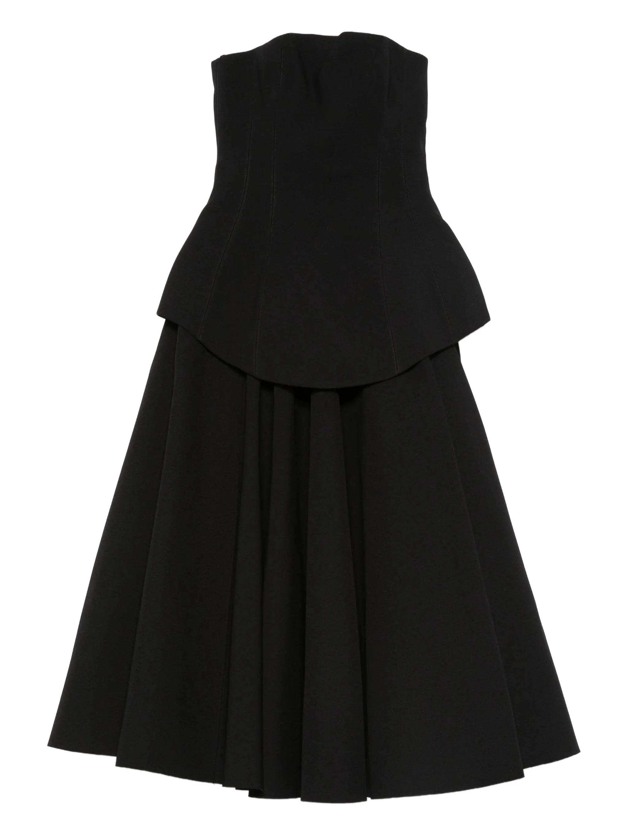 - black - strapless - layered detail - midi length - flared skirt - concealed zip fastening Materials & Product Care Lining: Elastane 5%, Polyester 95% Outer: Polyester 100%