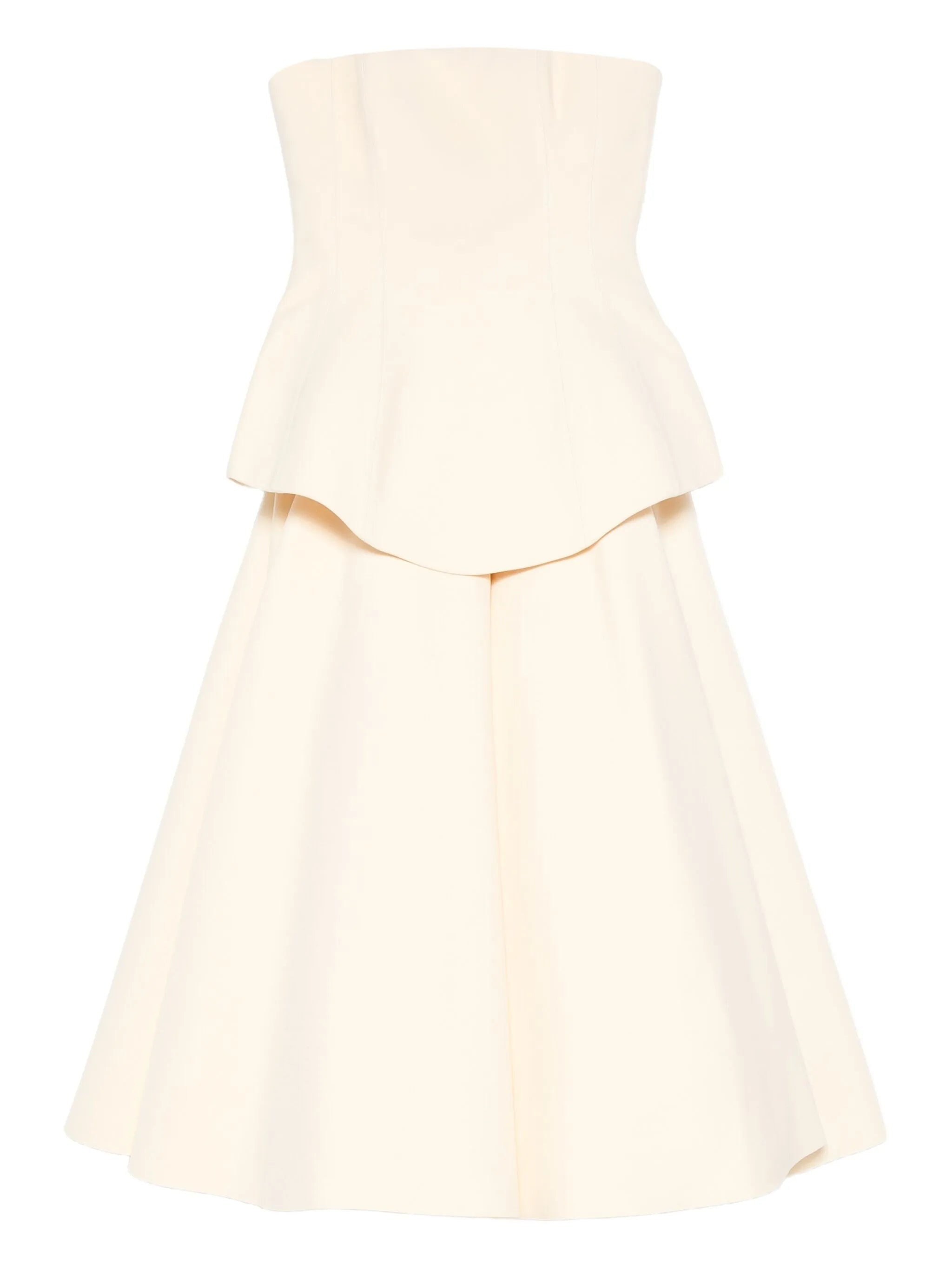 - beige - strapless - peplum detail - a-line skirt - concealed zip fastening - panelled construction Materials & Product Care Fabric 100% Size & Fit - The model is 1.79 m wearing size 8.