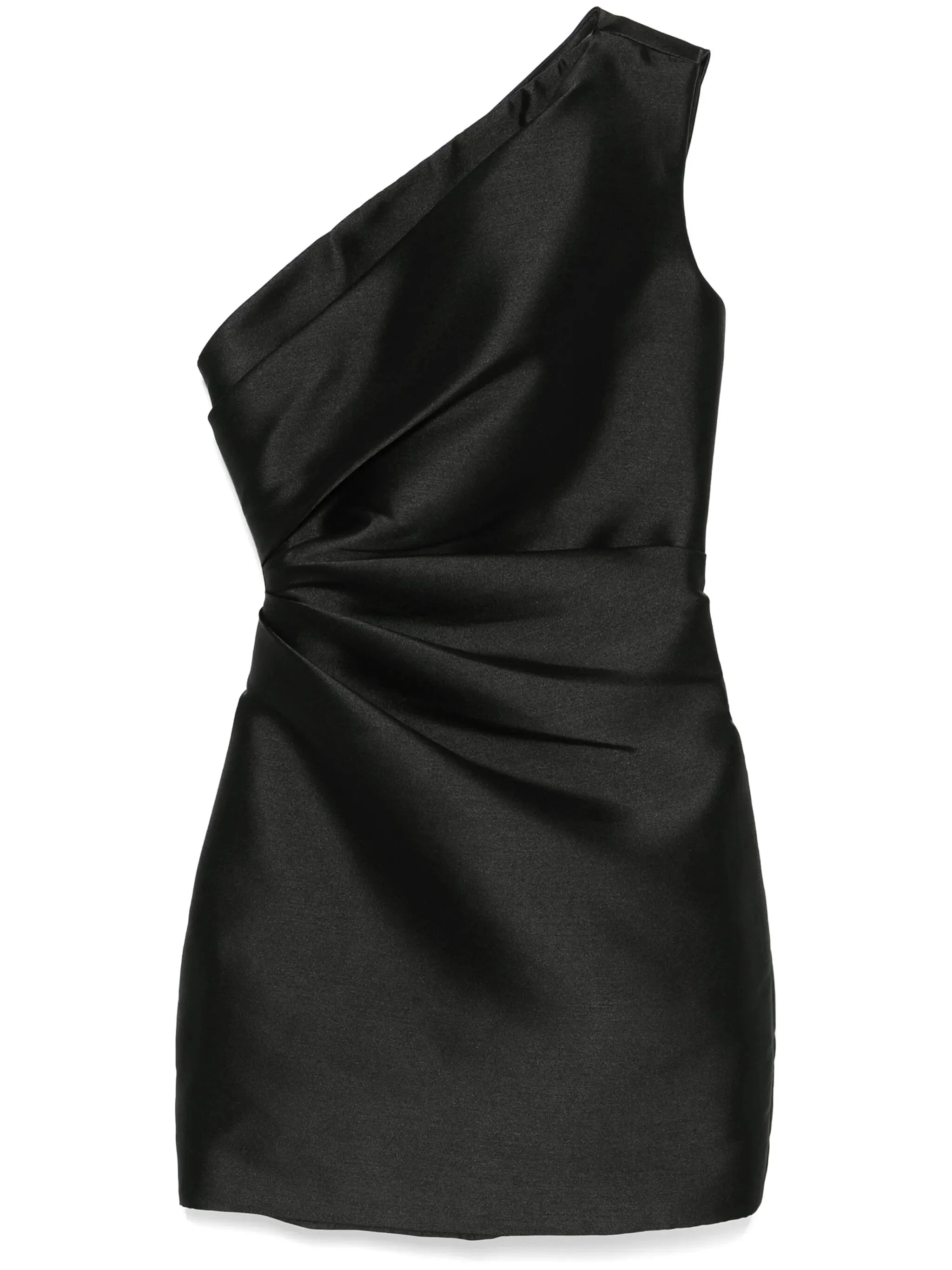 - black - interlock twill weave - concealed side zip fastening - draped detailing - one-shoulder - sleeveless - fitted waistline - full lining - straight hem - thigh-length Materials & Product Care Lining: Elastane 5%, Polyester 95% Outer: Polyester 100% Size & Fit - Designed for a slim fit that sits just away from the body offering a close yet comfortable fit - Made from a midweight fabric - The model is 1.75 m wearing size 8.