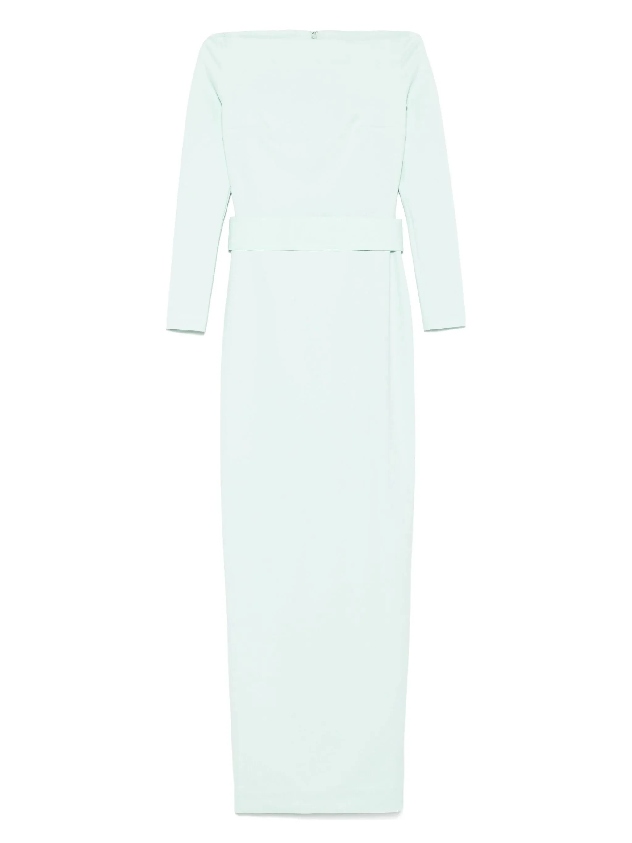 - mint green - concealed rear hook and zip fastening - detachable waist belt - rear slit - wide neck Materials & Product Care Polyester 95%, Spandex/Elastane 5% Size & Fit - Designed for a close fit throughout - Made from a midweight stretch fabric, this piece offers elasticity and flexibility when worn - The belt offers adjustability for fitted preferences - The model is 1.78 m wearing size 8.