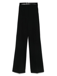 - black - concealed front button, hook and zip fastening - slip pockets to the sides - two rear welt pockets Materials & Product Care Elastane 5%, Polyamide 25%, viscose 70% Size & Fit - Designed with a flared hem, these trousers allow for a close fit at the waist with a slim fit over the leg and widening towards the hem - Made from a midweight stretch fabric, this piece offers elasticity and flexibility when worn - The model is 1.80 m wearing size XS.