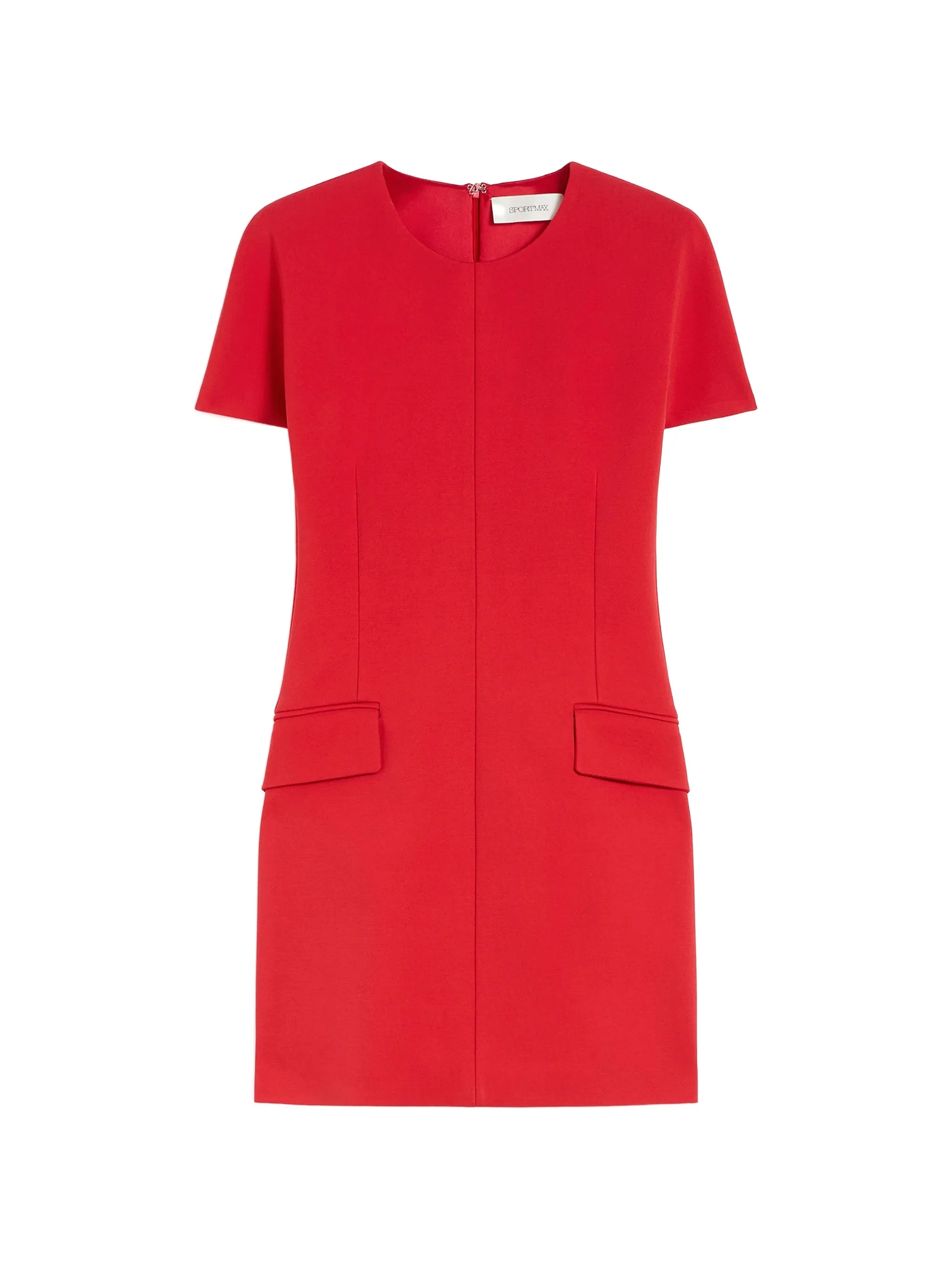 - red - shift style - short sleeves - front pockets - round neck - rear zip fastening Materials & Product Care Polyamide 16%, Spandex/Elastane 6%, viscose 78%