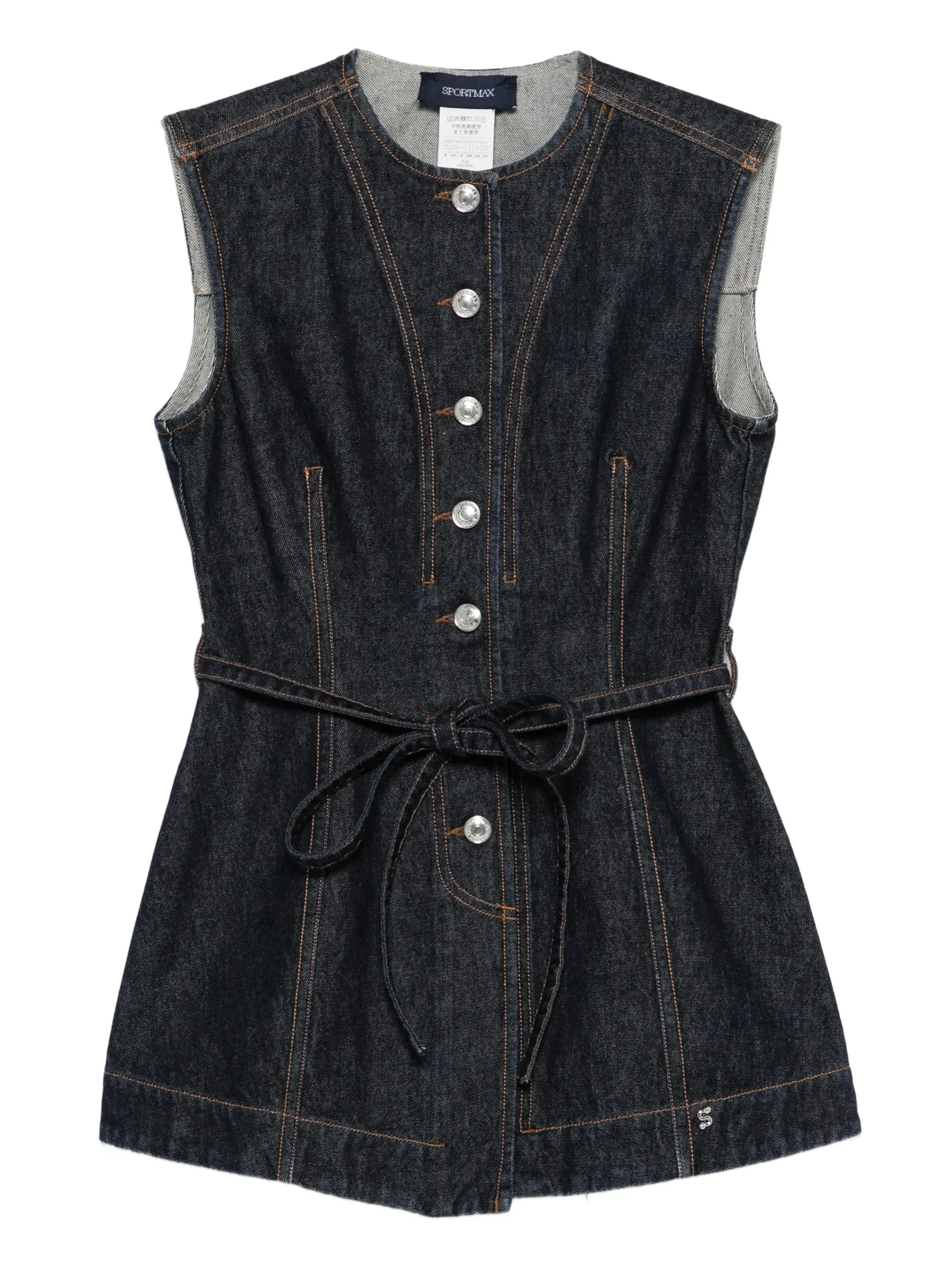 - midnight blue - topstitching - round neck - button fastening - waist tie - sleeveless Materials & Product Care Cotton 100%
