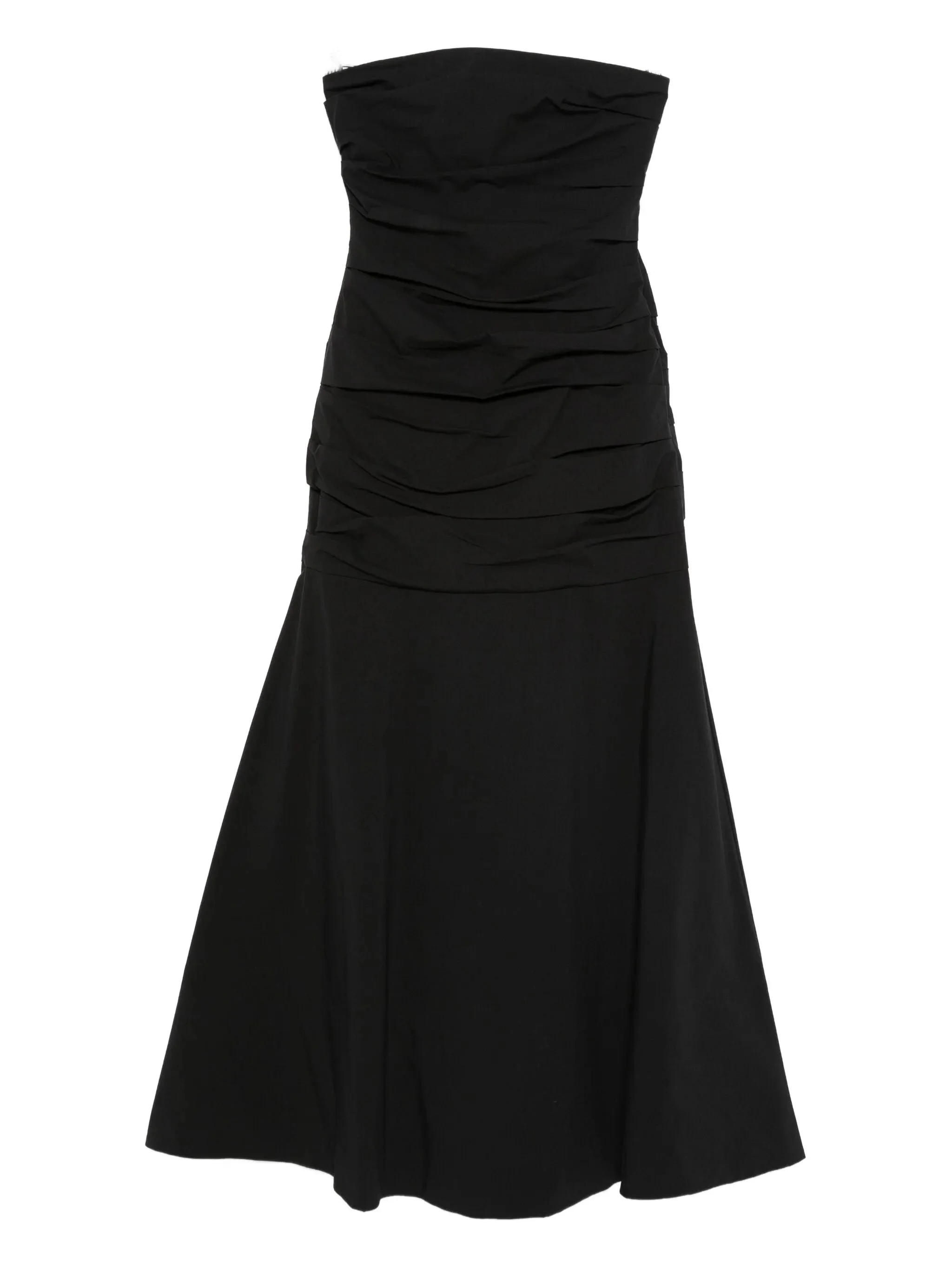 gathered strapless maxi dress