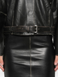 Brushed Leather Belted Jacket - Black