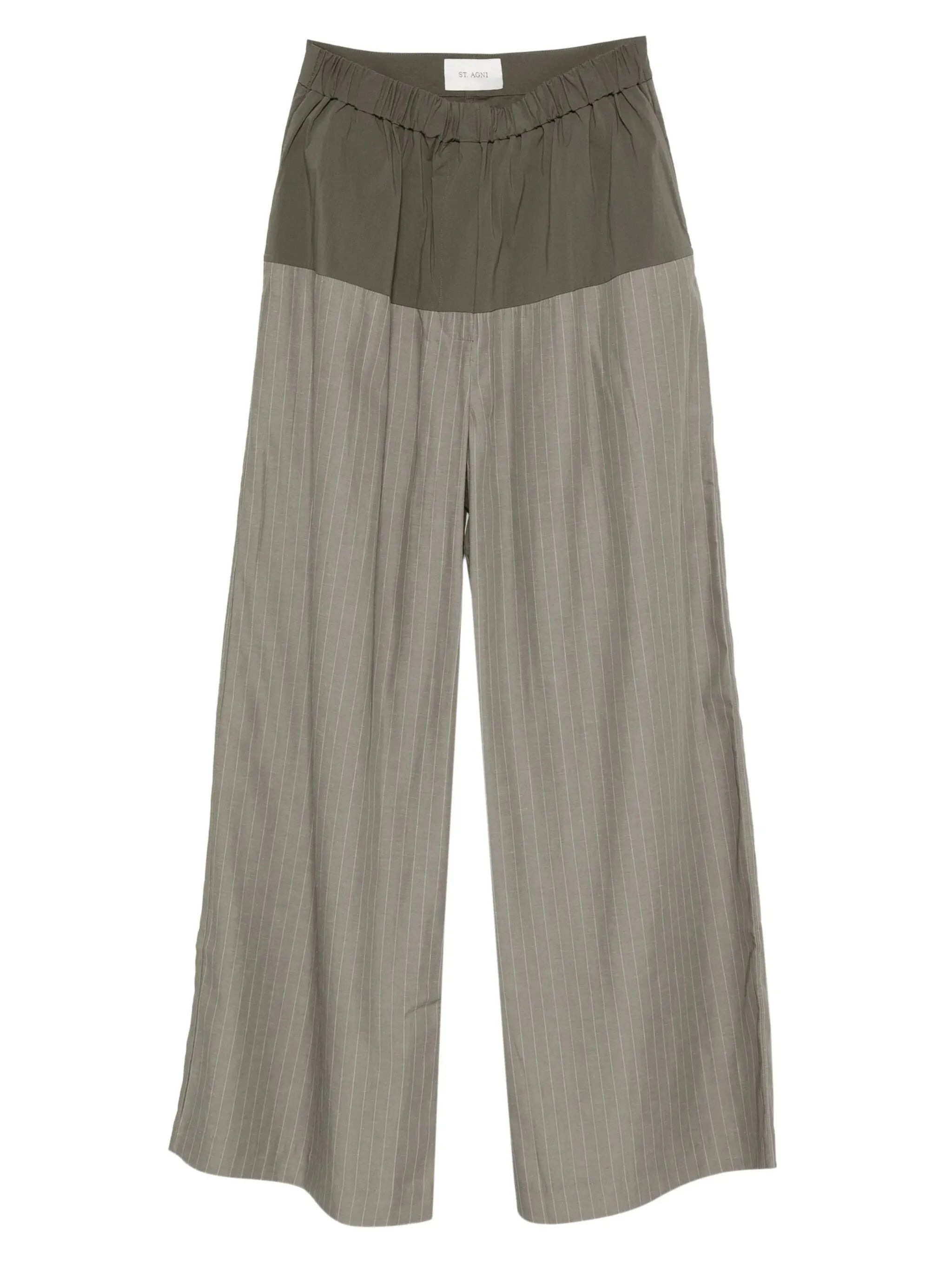 - olive green - elasticated waistband - two side slit pockets - rear welt pocket - colour-block design Materials & Product Care Linen/Flax 5%, Lyocell 21%, Polyester 73%, Rayon 1%