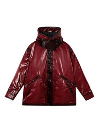 - bordeaux red - coated finish - hooded neckline - front pockets - concealed front fastening Materials & Product Care Cotton 92%, Polyester 8%, Polyurethane Resin 100%