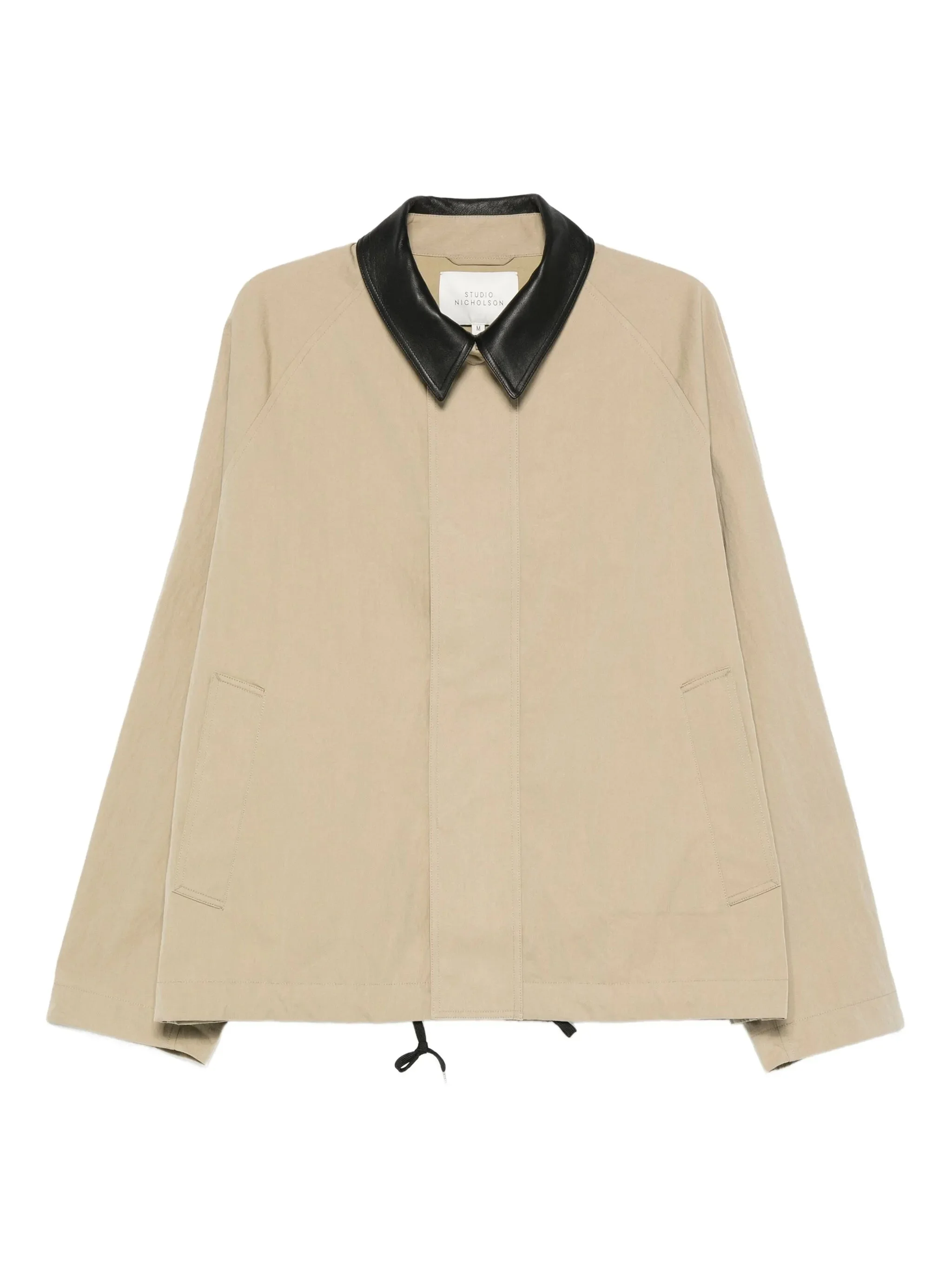 - beige - leather trim - front zip fastening - drawstring hem - side welt pockets - long sleeves Materials & Product Care Lining: Cotton 100% Outer: Cotton 78%, Nylon 2% Size & Fit - The model is 1.87 m wearing size M.