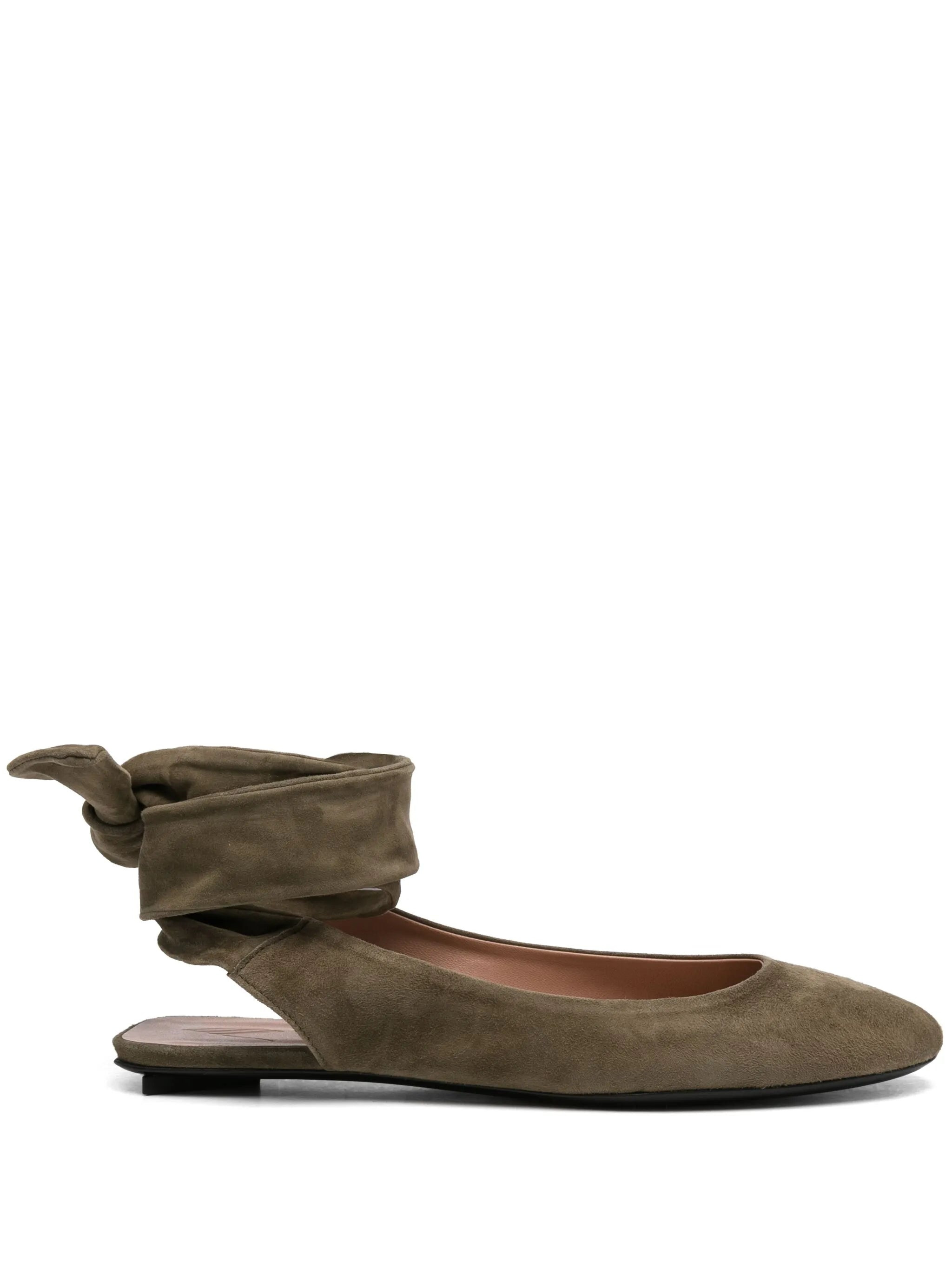- olive green - tie-fastening straps - flat leather sole - branded leather insole - round toe Materials & Product Care Lining: Calf Leather 100% Outer: Calf Suede 100% Sole: Calf Leather 100%