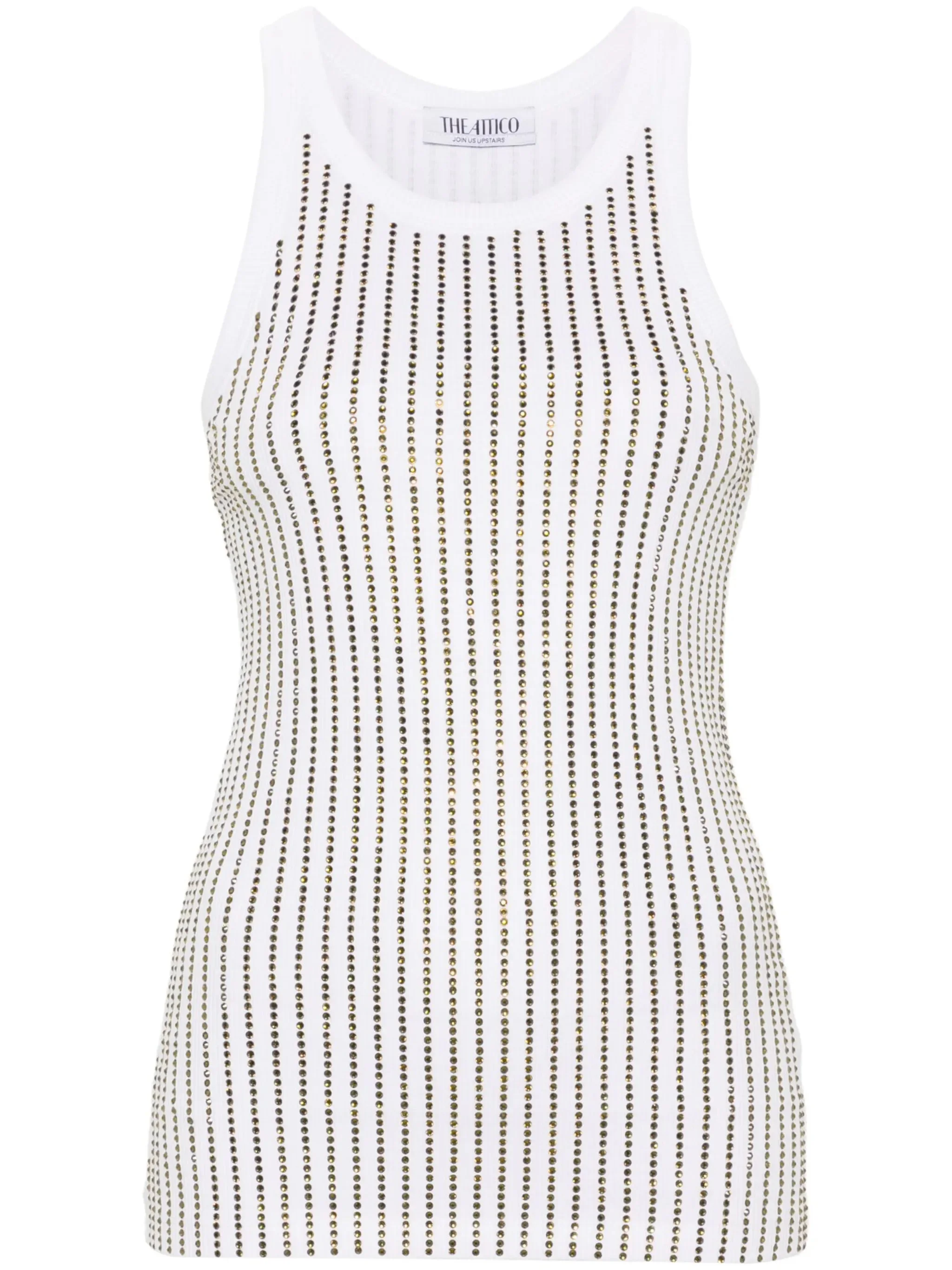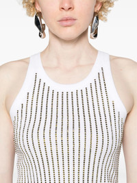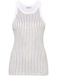 - white - cotton - fine ribbed - crystal embellishment - scoop neck - sleeveless - racerback - straight hem Materials & Product Care Cotton 100% Size & Fit - Designed for a slim fit that sits just away from the body offering a close yet comfortable fit - Made with a midweight knit, this piece offers some stretch - This piece fits true to size – take your usual size - The model is 1.74 m wearing size 40.