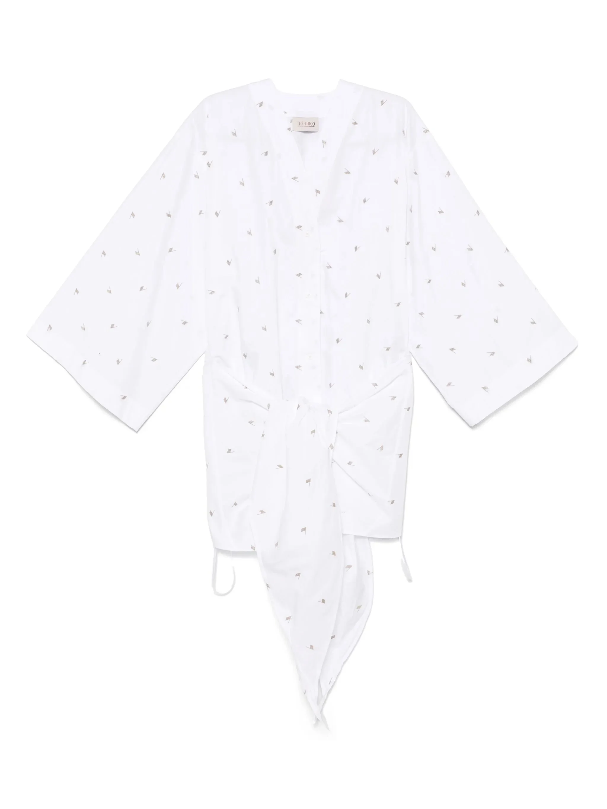 - white - front button fastening - knot detailing - long wide sleeves - V-neck Materials & Product Care Cotton 90%, Polyester 10% Size & Fit - Designed to be unstructured, offering a loose fit throughout - Made from a midweight non-stretch fabric - The model is 1.78 m wearing size 40.