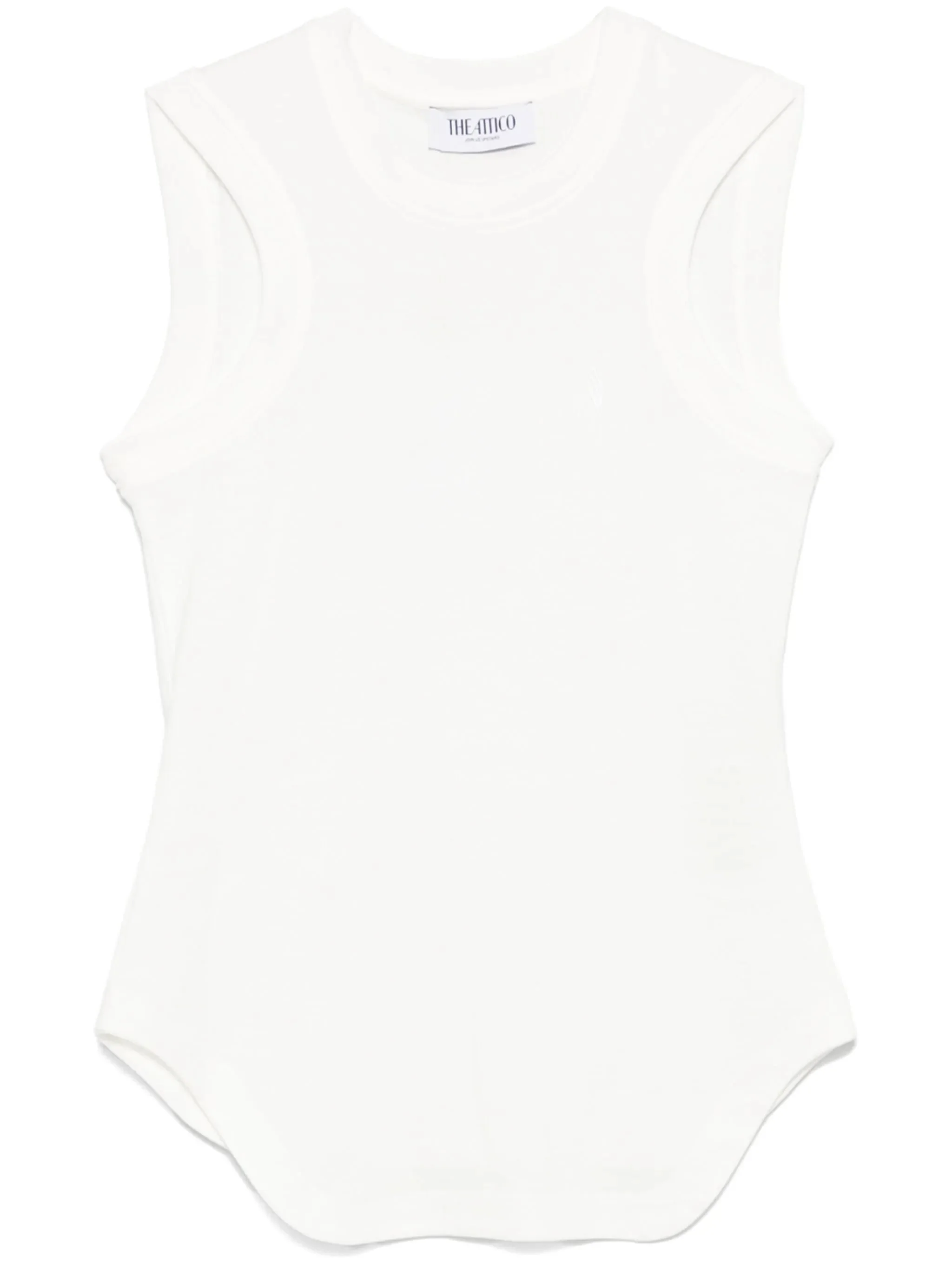 - white - crew neck - sleeveless - embroidered logo at the chest Materials & Product Care Cotton 100% Size & Fit - Designed for a slim fit that sits just away from the body offering a close yet comfortable fit - Made from a midweight non-stretch fabric, this piece offers minimal elasticity when worn - The model is 1.80 m wearing size 40.