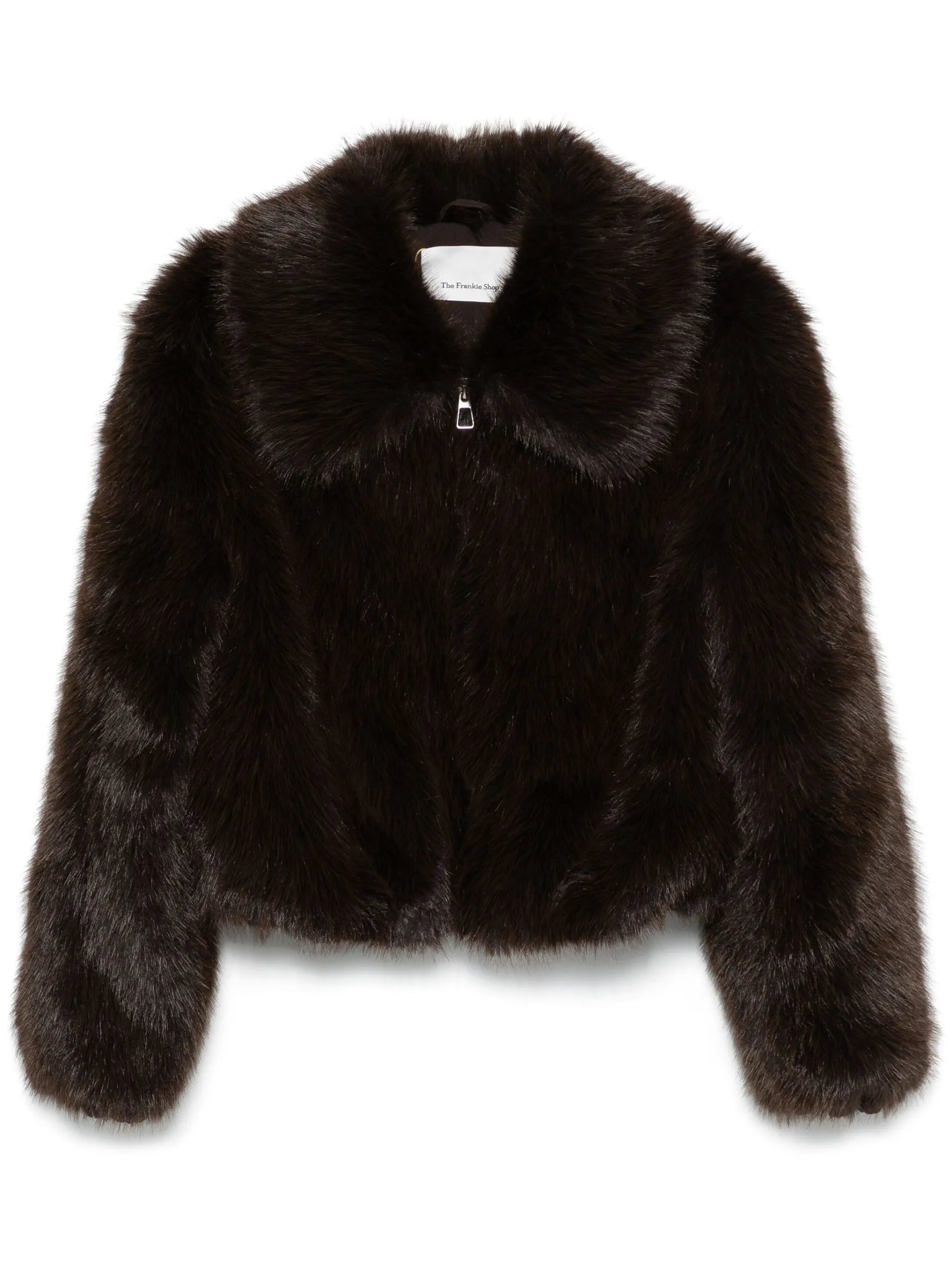 - cedar brown - faux-fur design - concealed front zip fastening - oversized collar - drop shoulder - long sleeves - elasticated cuffs - two side inset pockets - full lining - elasticated hem Materials & Product Care Lining: Polyester 100% Outer: Polyester 100% Size & Fit - Designed for a relaxed fit, this piece allows for comfort and movement when worn - Made from a midweight non-stretch fabric - The model is 1.80 m wearing size S.