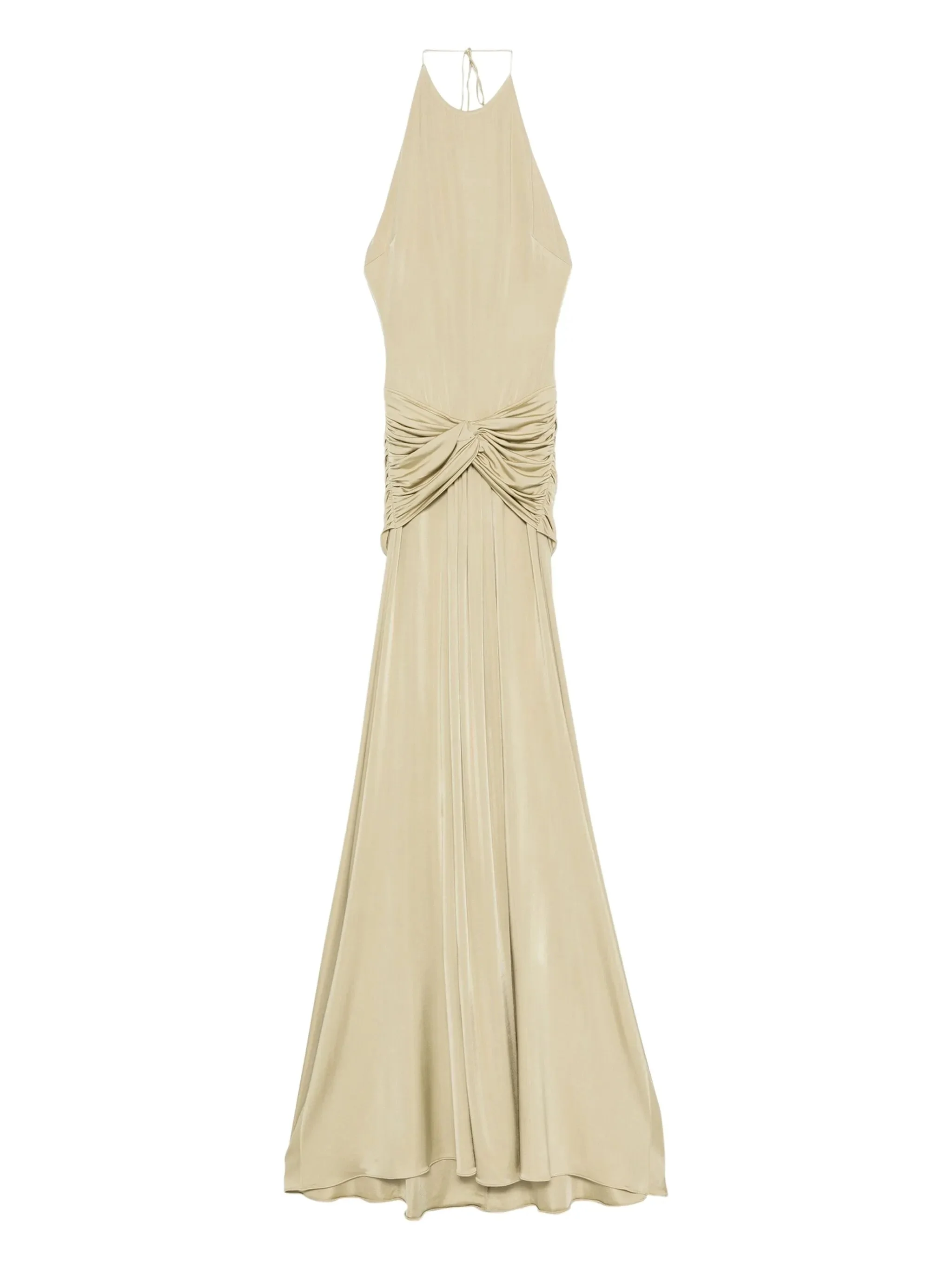 - beige - halterneck - gathered detail - sleeveless - open back Materials & Product Care Polyester 100% Size & Fit - The model is 1.80 m wearing size 42.