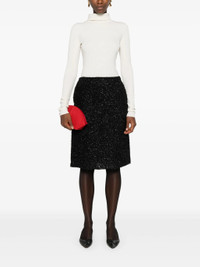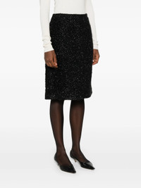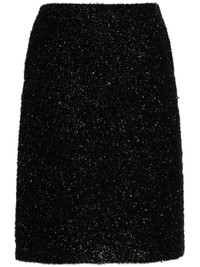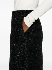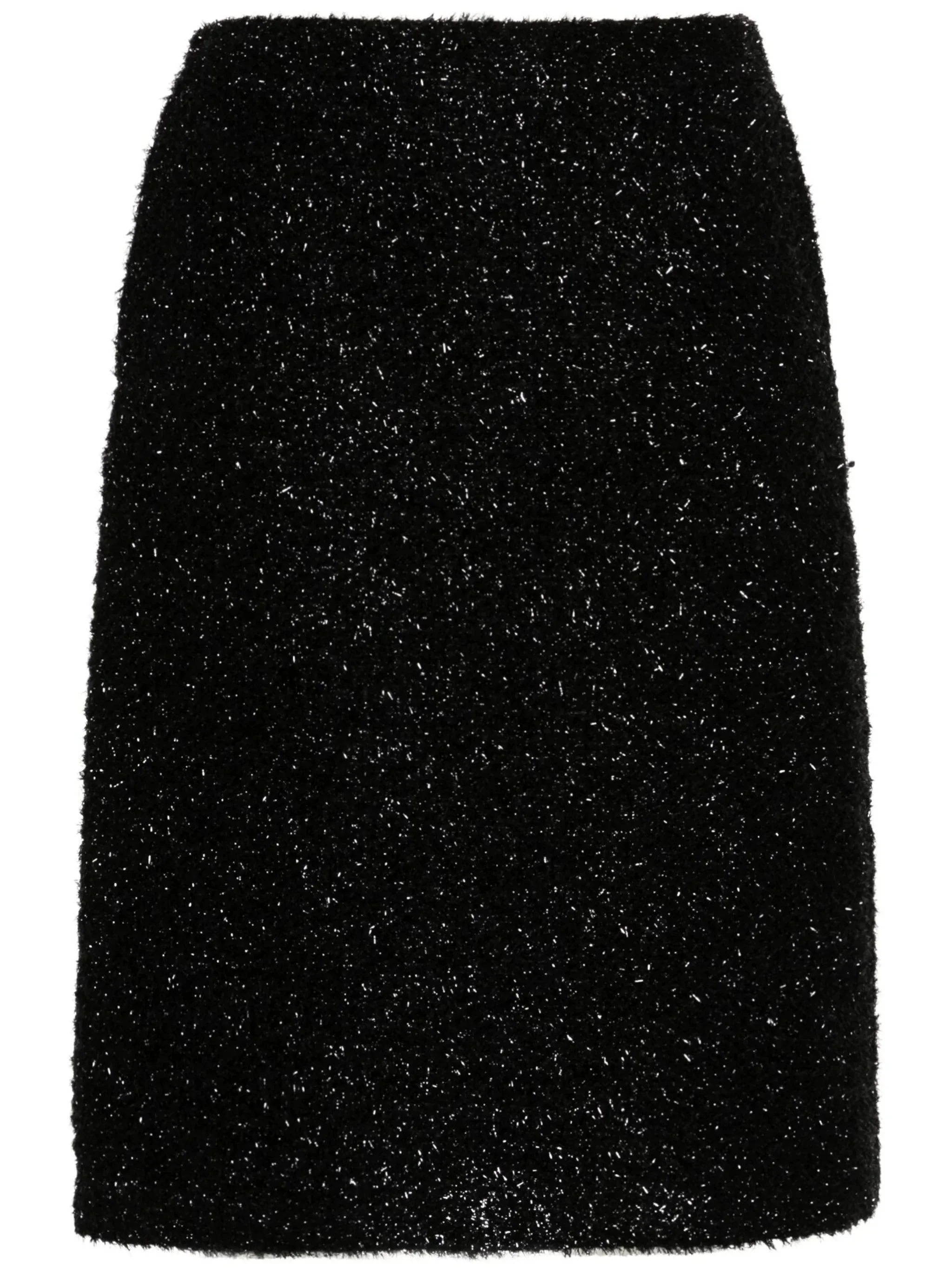 - black - metallic threading - shimmering effect - concealed rear zip fastening - two side inset pockets - rear slit - full lining - straight hem Materials & Product Care Lining: Silk 100% Outer: Metallic Fibre 40%, Nylon 52%, Silk 8% Size & Fit - Made from a midweight non-stretch fabric - The vented hem offers movement at the rear - This midi-length skirt is intended to be worn high on the waist - The model is 1.78 m wearing size 2.