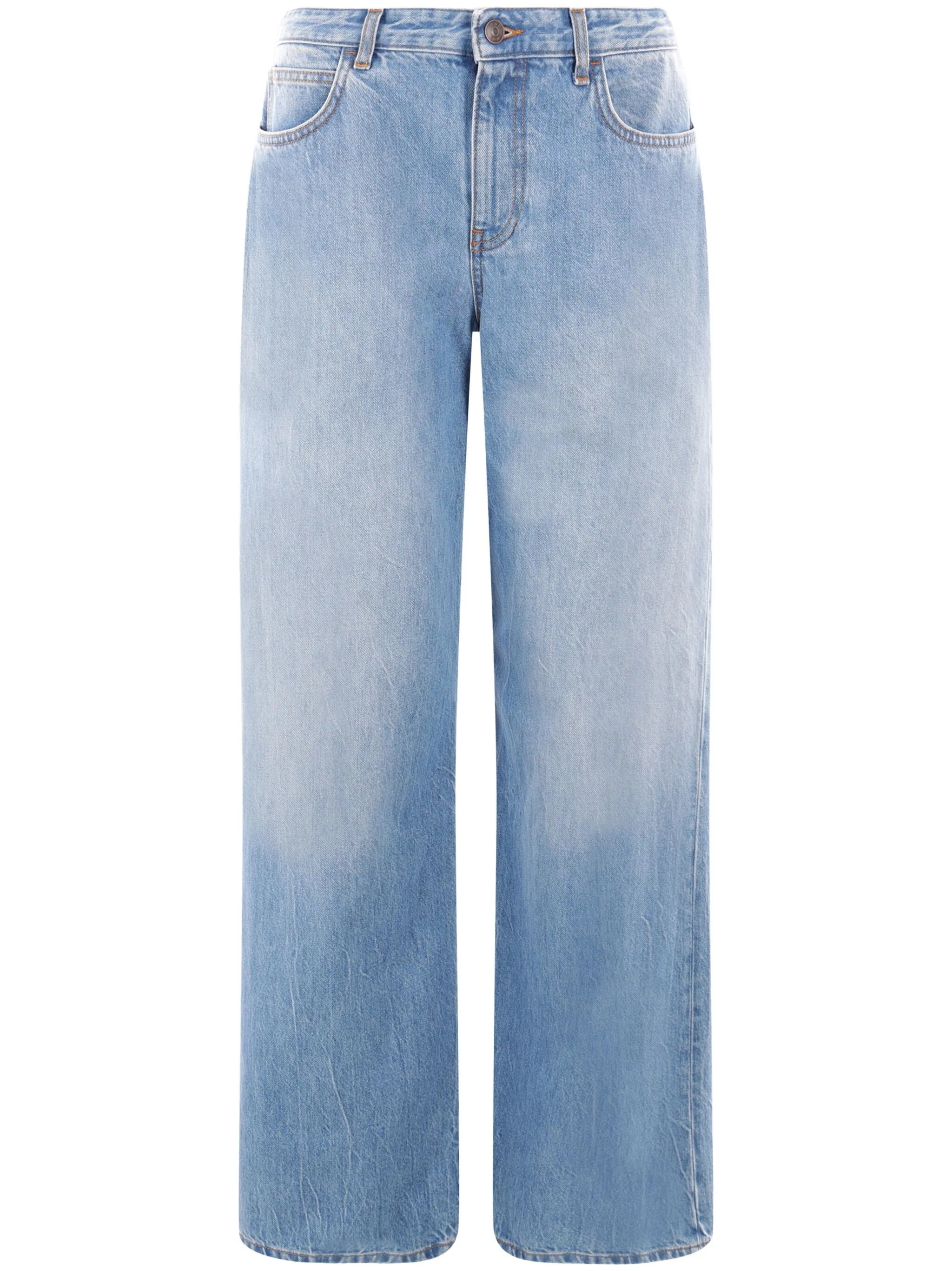 - light blue - cotton - denim - washed - concealed fly and button fastening - low-rise - belt loops - classic five pockets - wide leg Materials & Product Care Cotton 100%