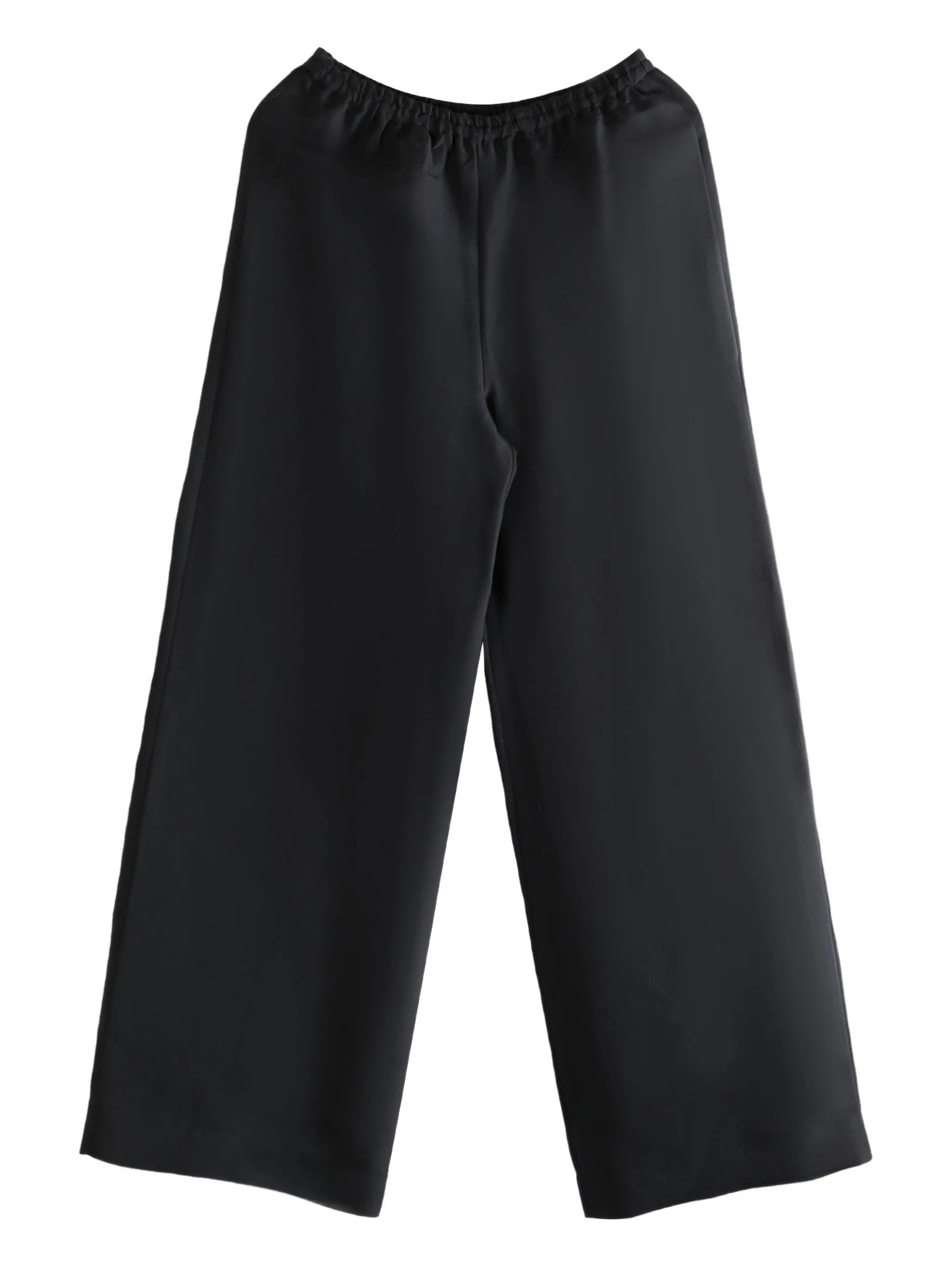 - black - silk fabric - elastic waistband - wide leg - straight hem - pull-on style Materials & Product Care Silk 100%