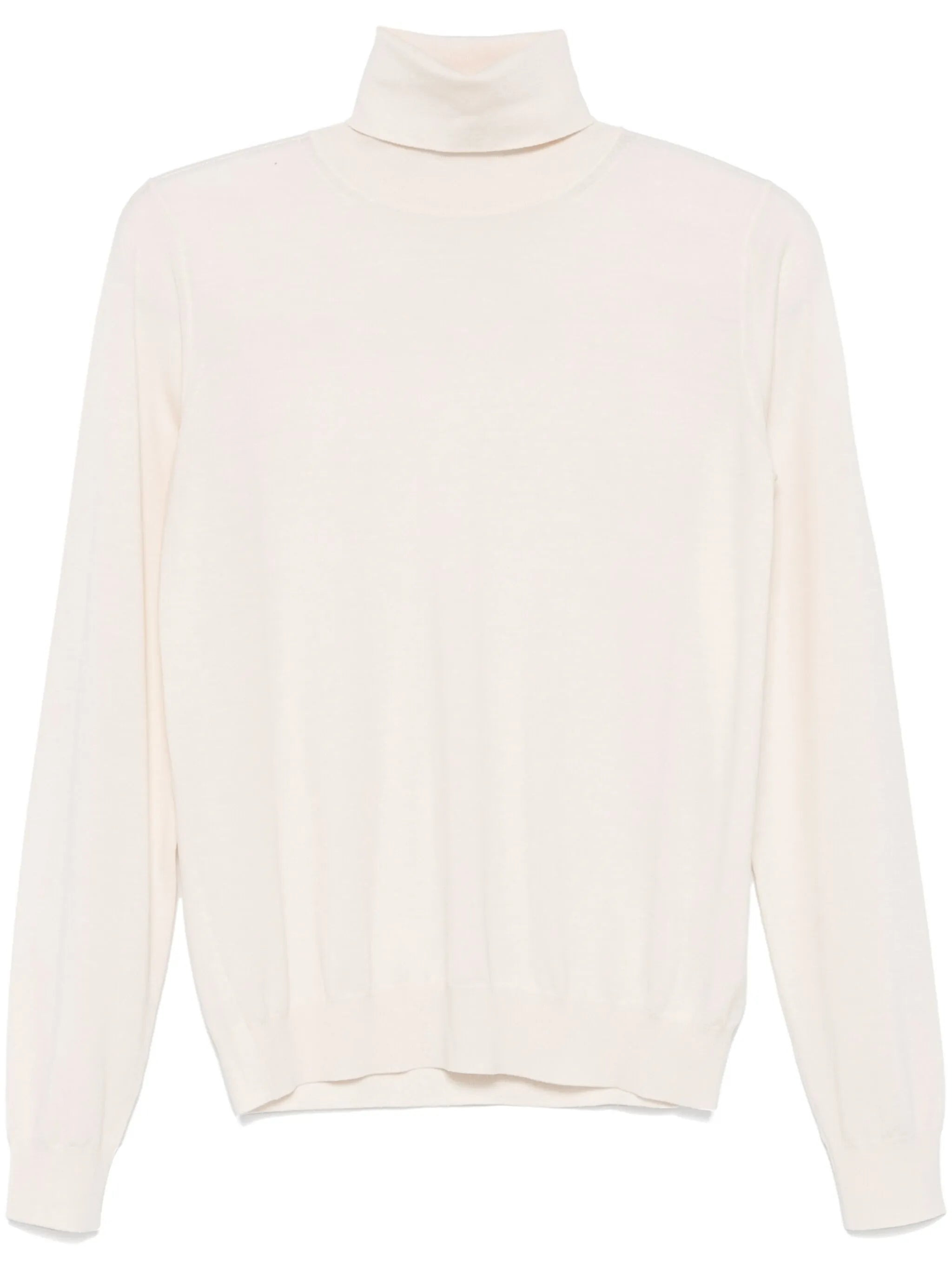 - cream white - wool - fine knit - roll neck - long sleeves - ribbed cuffs and hem Materials & Product Care Wool 100% Size & Fit - Designed for a relaxed fit, this piece allows for comfort and movement when worn - Made with a lightweight knit, this piece offers some stretch - The ribbed hem offers a close, comfortable fit - The model is 1.80 m wearing size S.