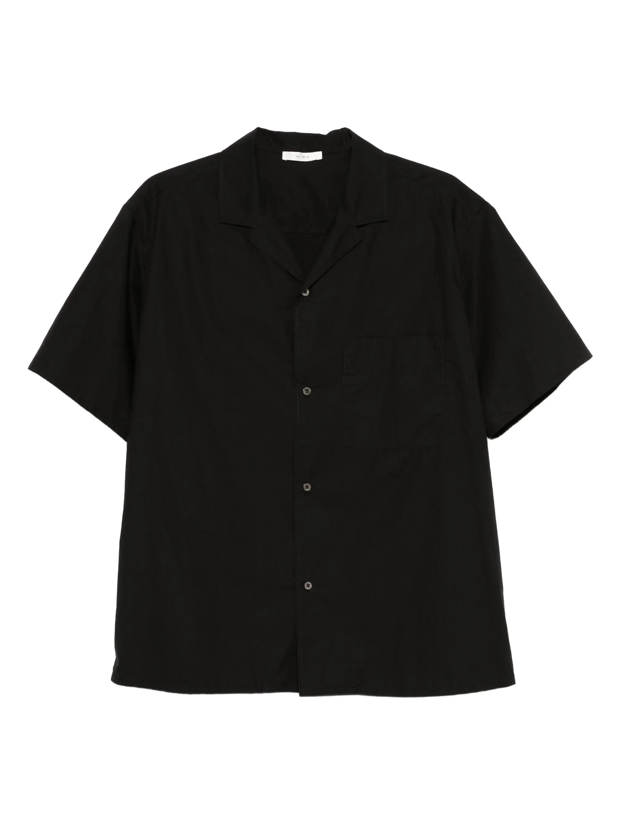 - black - front button fastening - camp collar - short sleeves - straight hem Materials & Product Care Cotton 100% Size & Fit - Designed for a regular fit, allowing for a comfortably loose fit throughout the body - Made from a midweight non-stretch fabric - The model is 1.87 m wearing size M.