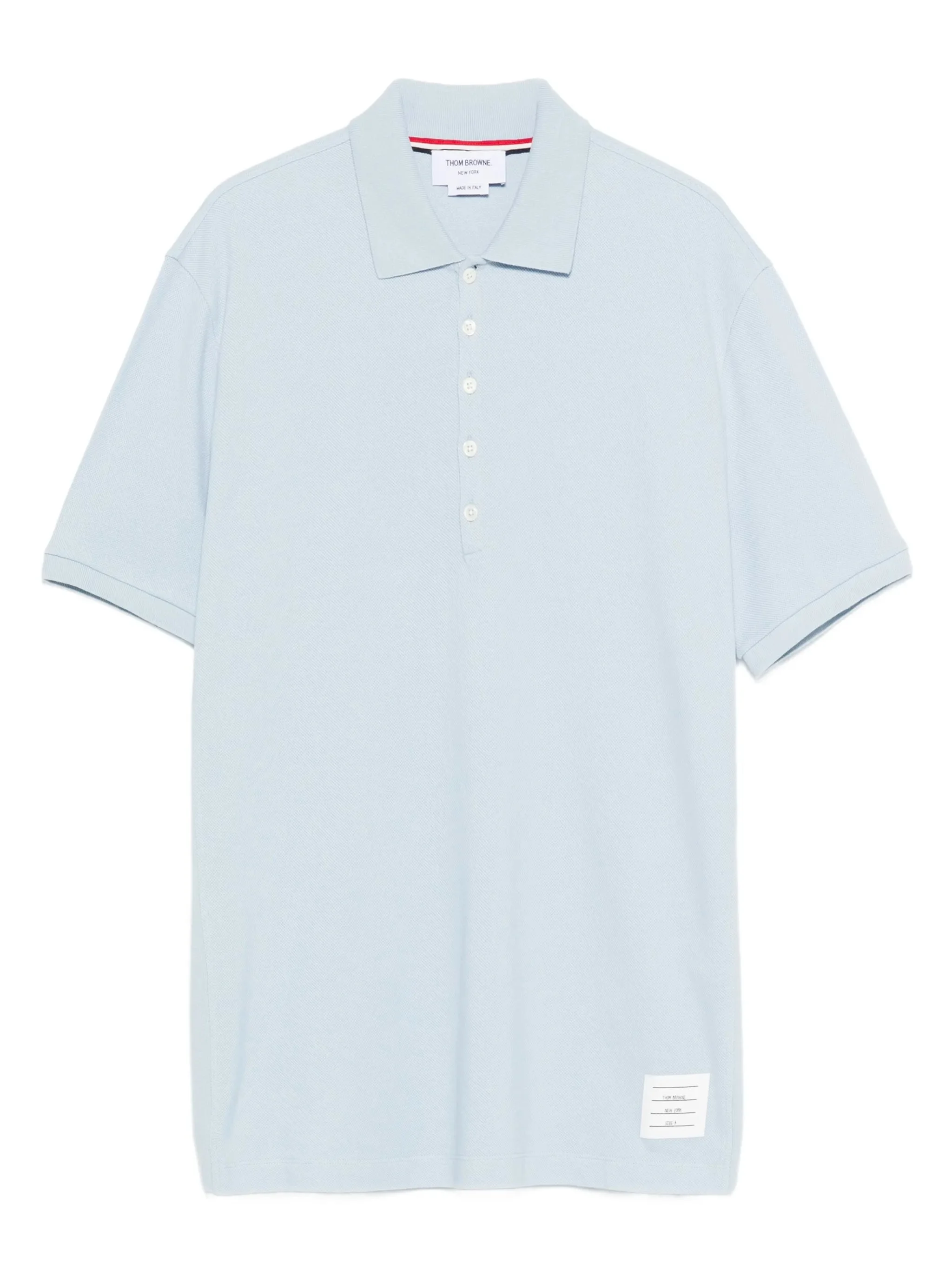 - sky blue/white - cotton - logo patch to the front - signature 4-Bar stripe - signature grosgrain loop tab - polo collar - front button placket - short sleeves - ribbed cuffs - straight hem Materials & Product Care Cotton 100% Size & Fit - Designed for a relaxed fit, this polo shirt offers comfort and movement - Made from a midweight non-stretch fabric, this piece offers minimal elasticity when worn - This piece fits true to size – take your usual size