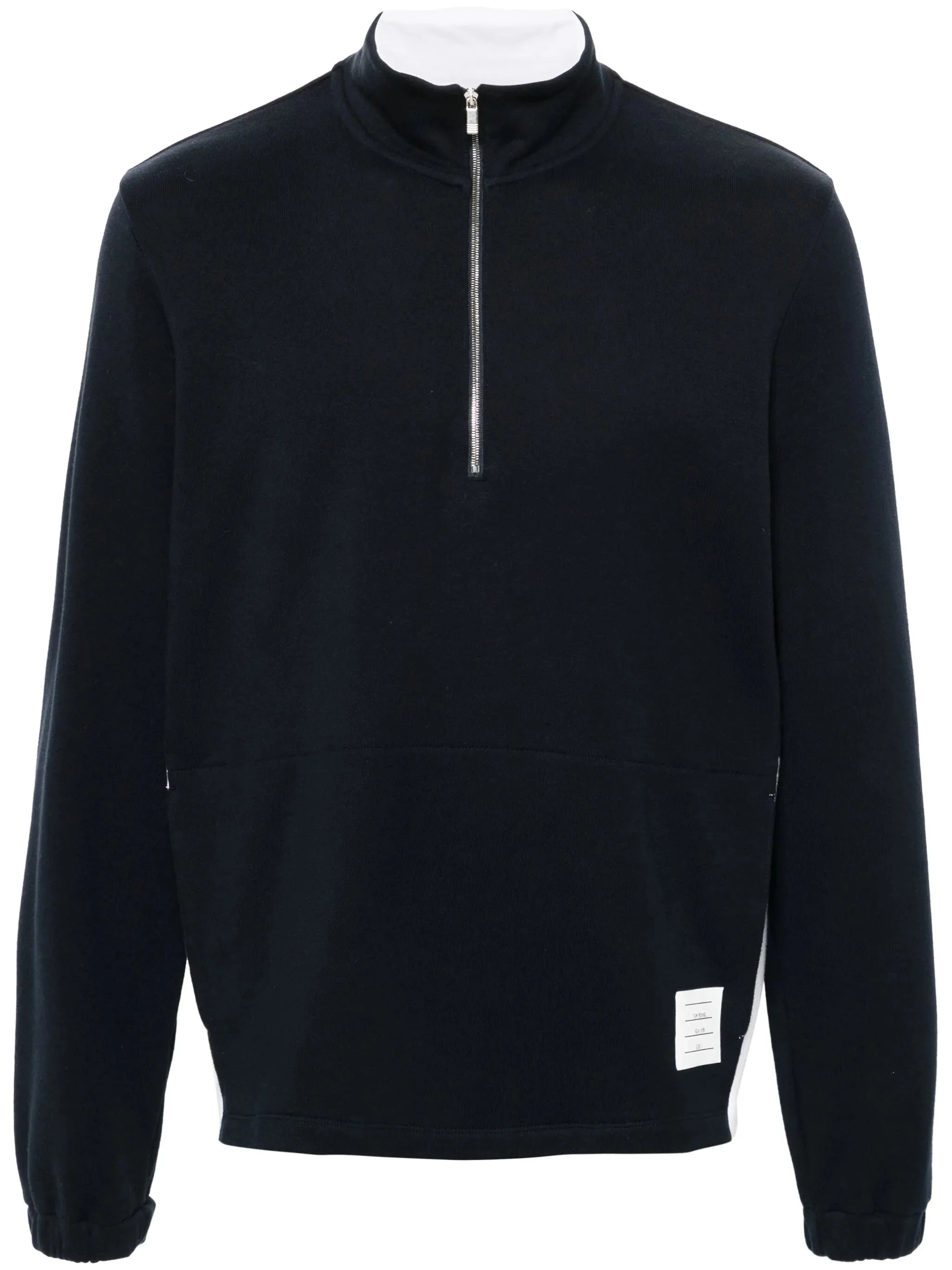 - blue/white - cotton - jersey texture - signature 4-Bar stripe - signature grosgrain loop tab - logo patch to the side - funnel neck - short front zip fastening - long sleeves - elasticated cuffs - front pouch pocket - straight hem Materials & Product Care Cotton 100% Size & Fit - Designed for a relaxed fit, this piece allows for comfort and movement when worn - Made from a midweight non-stretch fabric, this piece offers minimal elasticity when worn - This piece fits true to size – take your usual size - The model is 1.86 m wearing size 1.