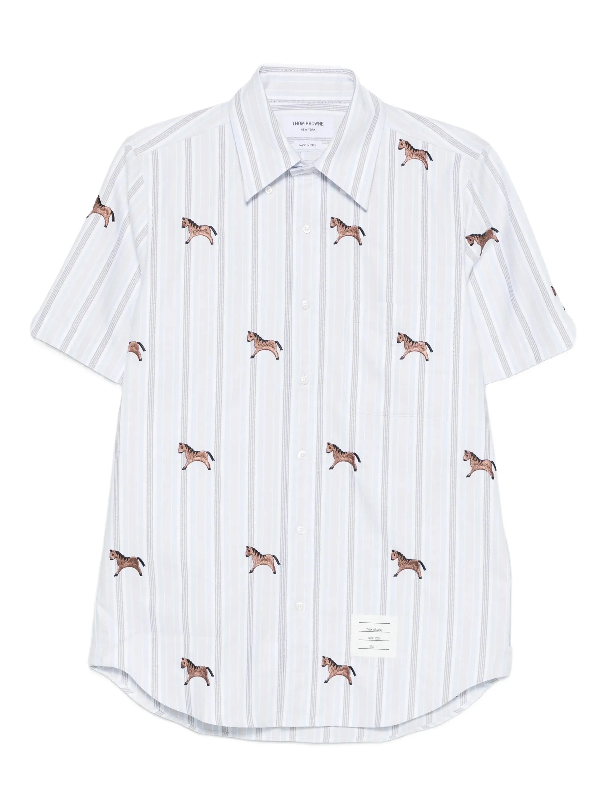 - blue and multicolour - striped - horse print - button closure - cotton - chest pocket Materials & Product Care Cotton 100%