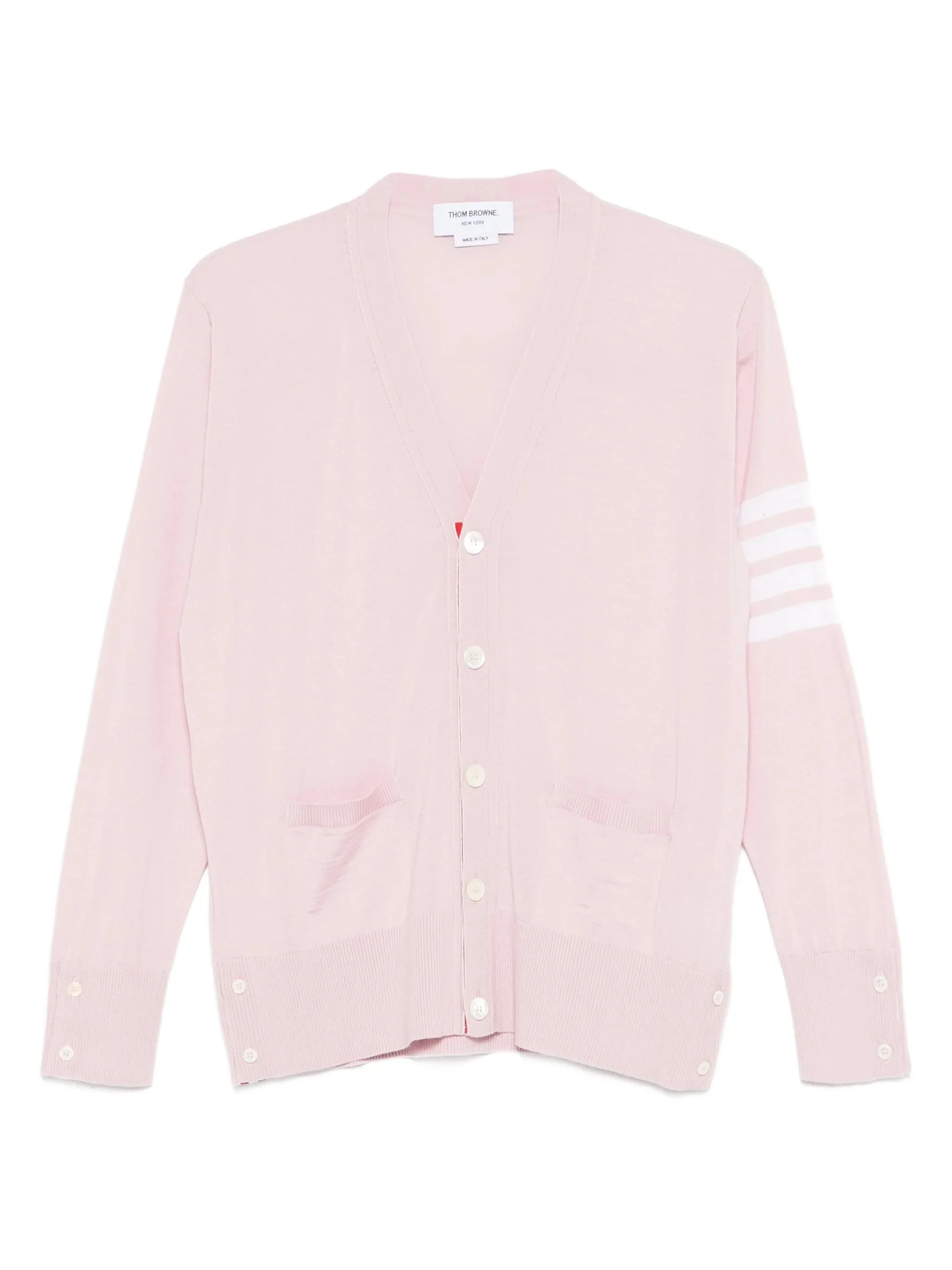 - light pink - stripe detail - V-neck - front button fastening - long sleeves - two front patch pockets Materials & Product Care Virgin Wool 100% Size & Fit - The model is 1.85 m wearing size 3.