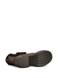 - dark brown - suede - faux-shearling trim - elasticated side panels - block heel - rubber sole Materials & Product Care Lining: Leather 100% Outer: Calf Suede 100% Sole: Rubber 100%