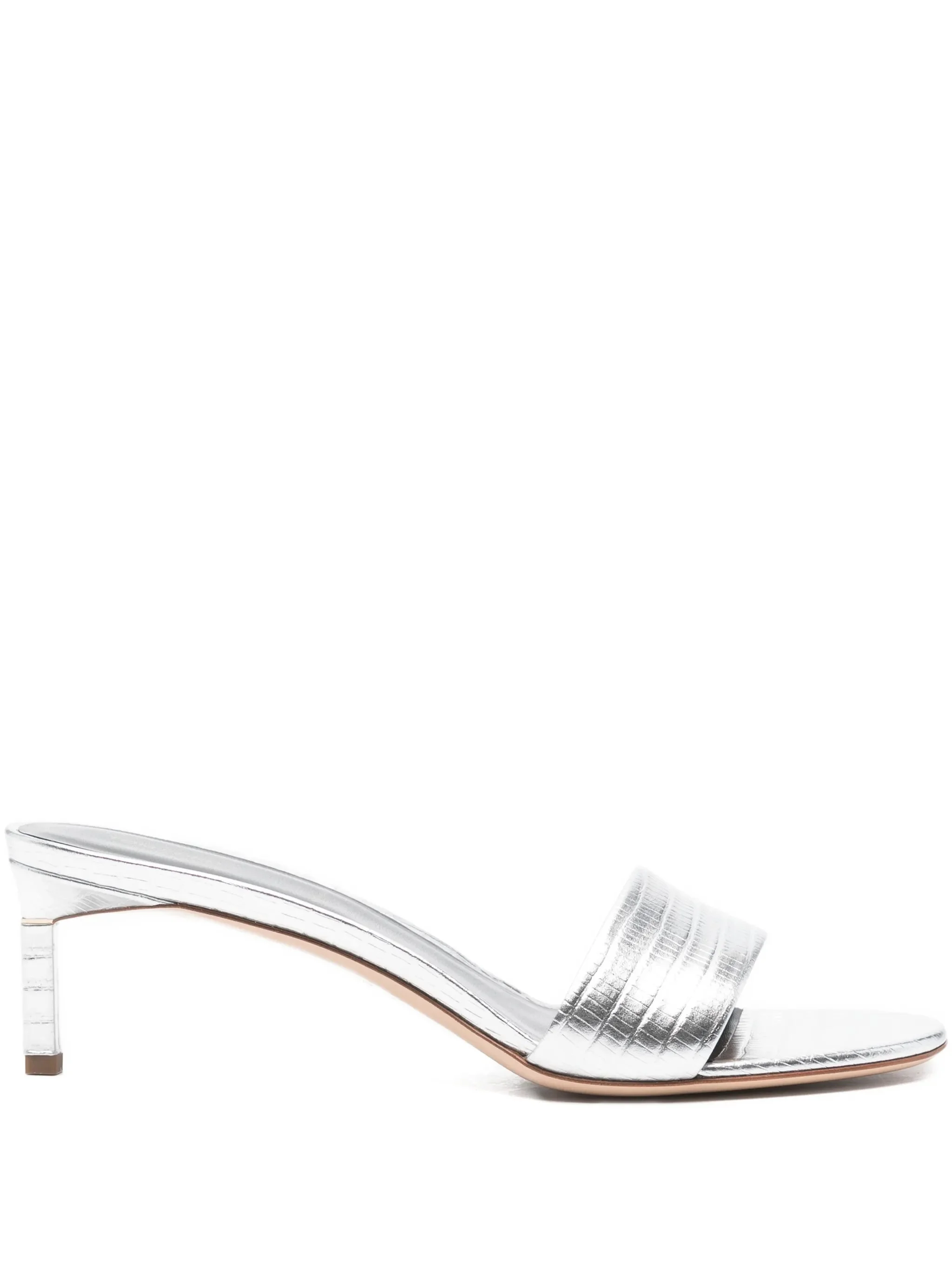 - silver-tone - shiny finish - leather sole - open toe - kitten heel Materials & Product Care Lining: Calf Leather 100% Outer: Calf Leather 100% Sole: Calf Leather 100%