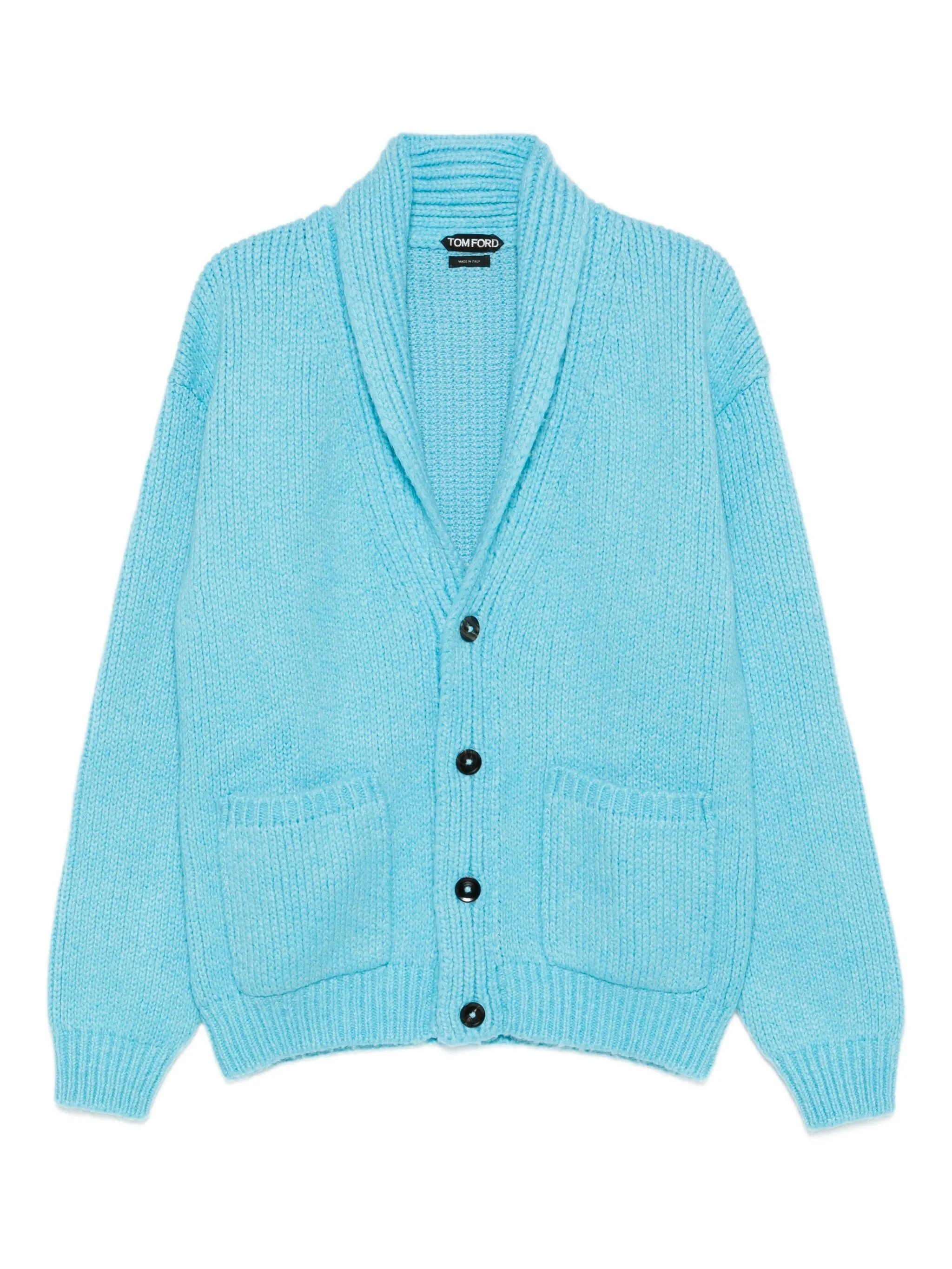 - light blue - shawl collar - button fastening - ribbed trims - front patch pockets Materials & Product Care Fabric 100% Size & Fit - The model is 1.85 m wearing size 50.